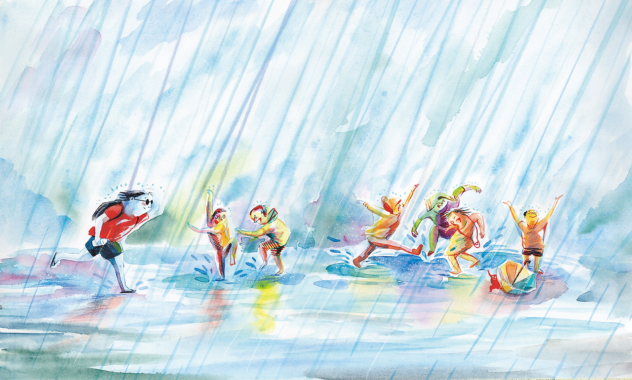 그러나 소재가 소재인지라 『여름,』은 그림에 더 집중해야 했다. 여러 재료를 시도해가면서 재미와 친근감을 줄 수 있는 기법을 찾아 나갔다. 하지만 더미를 여러 번 고치면서도 마지막까지 해결되지 않았던 문제는 ‘재미’였다. 서사 구조가 분명한 이야기도 아니고 주인공 없이 여름의 단편적인 풍경과 인상만을 나열하다 보니 나타나는 난관이었다.