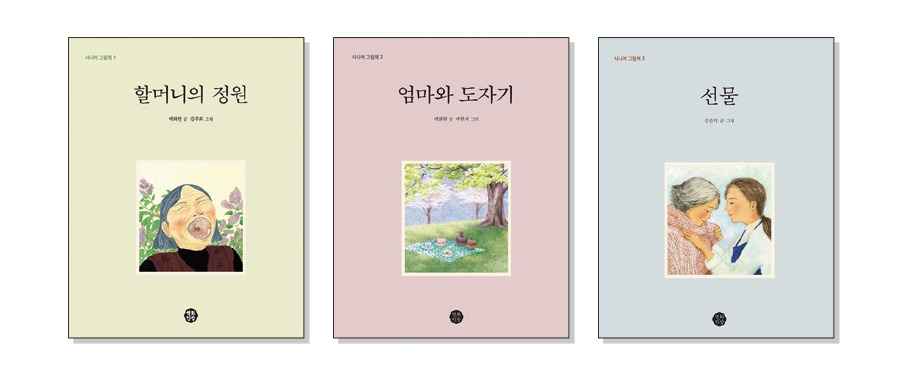 『할머니의 정원』과 『엄마와 도자기』를 통해 나이 들수록 짙어지는 ‘외로움’의 문제를 건드려보고 싶었습니다. 나아가 『할머니의 정원』에서는 ‘배움’의 문제를, 『엄마와 도자기』는 ‘그늘’의 가치를 되물어보고 싶었지요. 하지만 저자의 의도는 전혀 중요한 게 아닙니다. 작품은 오롯이 읽는 이의 몫이니까요. 『선물』은 누군가의 딸이자 엄마인 모든 이에 대한 헌사입니다. 그 자체로서 감동이지요. 그리고 세 권 모두 64쪽~72쪽임에도 넘기는 페이지마다 아름답고 따듯한 그림이 가득합니다. 들여다보고 있으면 절로 행복해질 만큼이요.