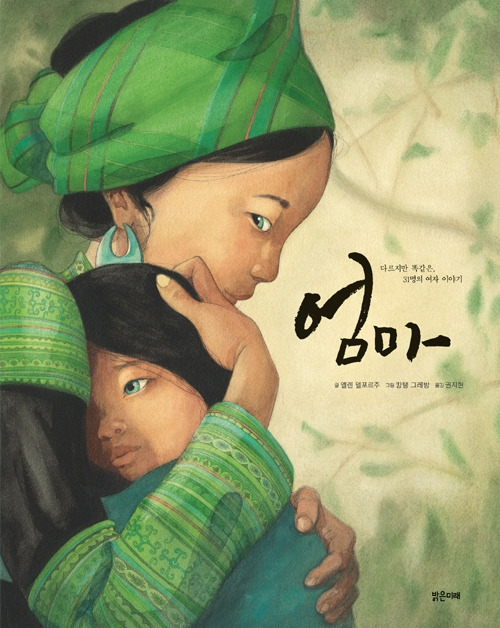 『엄마』는 웬만한 노트북보다 크고 묵직하다. 여느 책처럼 줄거리가 하나인 그림책이 아니다. 이 세상 곳곳 다른 환경에서 태어나 살다가 ‘엄마’가 된 여자들의 이야기 서른한 개가 모여 그림책을 이룬다. 엄마들은 자기가 낳은 아기를 안고 눈을 맞추며 속마음을 고백하고 또 미래를 다짐한다. “영원히 너를 지켜주는 엄마로 남겠다”고 몇 번이고 말한다. 그러나 내가 보기에 그들의 크고 아름다운 눈동자에 두려움이 있다. 왜 아니겠는가?