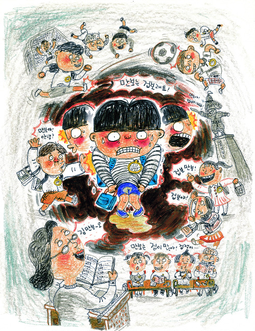 어린이문학에서 용기를 주제로 삼은 이야기는 이렇듯 두려움이 많은 겁쟁이로부터 시작한다. 김유의 『겁보만보』(최미란 그림 / 책읽는곰)만 해도 그렇다. 늦둥이 외동아들로 태어나 ‘만 가지 보물’이란 뜻의 만보란 이름이 붙은 아이는 딱 한 가지 부족한 점이 있다. 사랑도 많이 받고 마음도 착한데 용기가 부족하다. 바람 소리만 나도 무서워하고, 뒤에서 발소리만 들려도 화들짝 놀란다. 보다 못한 옆집 아줌마가 말한다. “아이고, 맨날 코앞에만 내놓고 쩔쩔매는디, 애가 우는 소리 안 허고 배겨유?” 그리하여 부모는 만보를 혼자 시장에 보낸다. 하지만 시장으로 가는 갈림길에서 엉뚱한 길로 접어든 만보는 판타지가 섞인 모험을 한다.