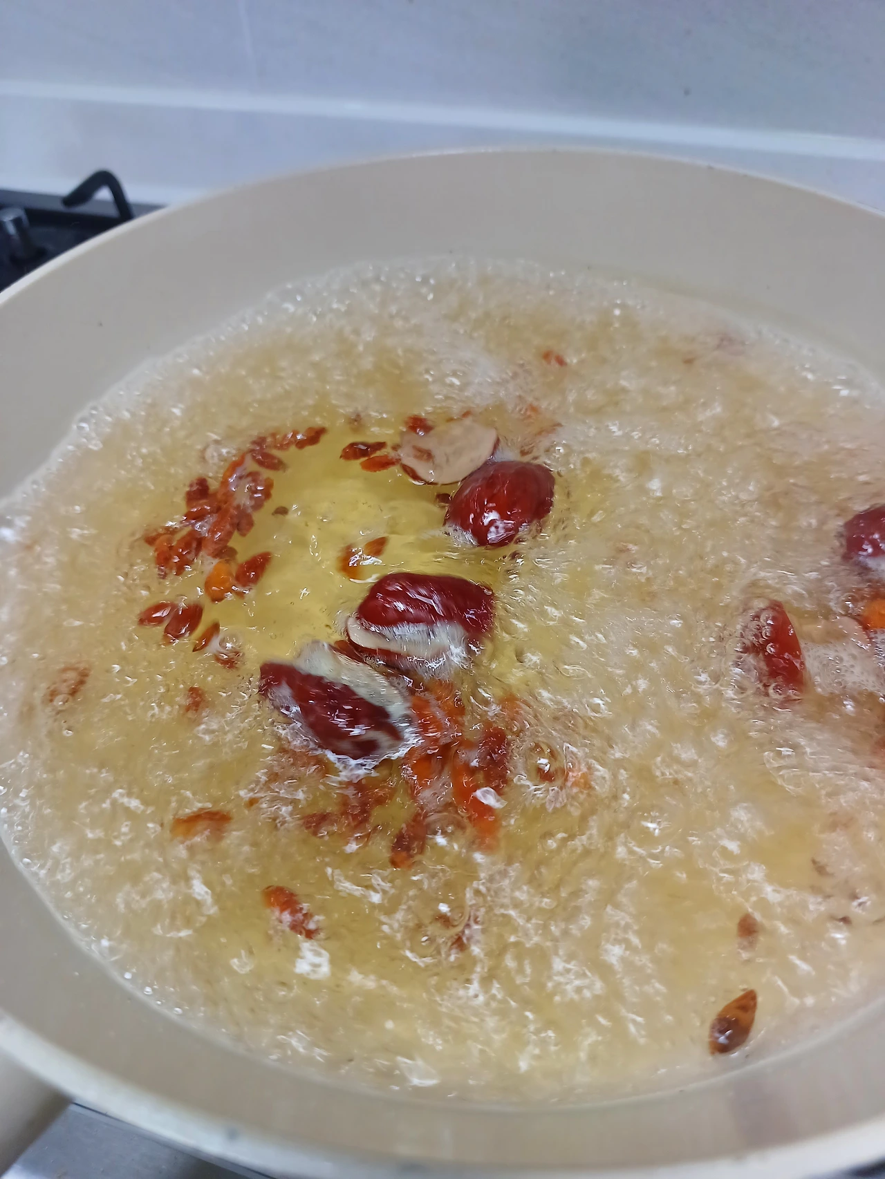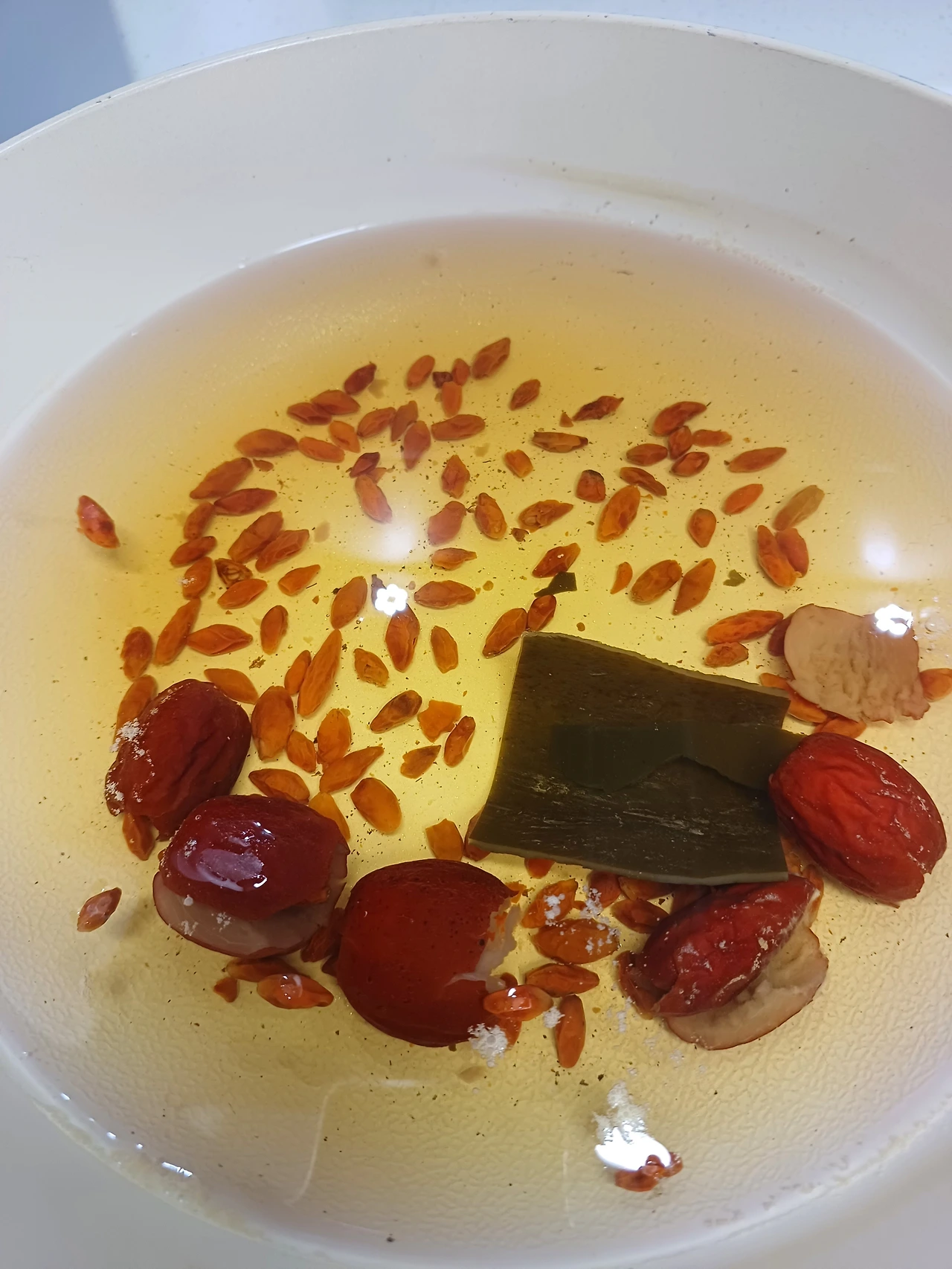 밤새 아들 방을 들여다보며 날을 새고는, 이른 아침 일어나 찹쌀을 씻어 물에 담가 불리고 구기자와 대추를 넣어 끓여 채수를 만들었다. 만성피로에도 좋고 몸에 활력도 주는 구기자로 몸과 마음이 지쳐있는 아들에게 부드러운 위로를 건네고 싶었다. 그렇게 구기자와 궁합이 좋은 대추가 끓고 나면 마지막에 불을 끄고 다시마 한 조각을 넣어 감칠맛을 더한다.