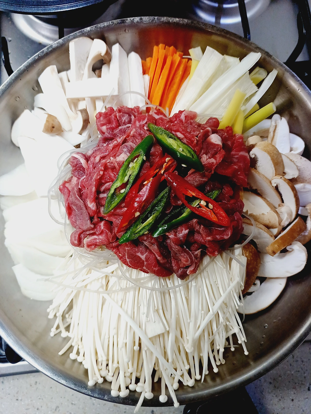 불고기 전골로 따뜻한 한 끼를 만들면서 불현듯 오래전 불고기 전골을 먹으면서 큰 딸아이의 "이건 거부할 수 없는 맛이지~" 했던 말이 생각이 났다. 수험생이던 큰 딸에게 딱히 엄마로서 해줄것이 없으니 매 끼니마다 영양 가득한 밥상이라도 내밀어 주고 싶었다. 밥먹는 내내 연신 쫑알거리는 딸 아이와 눈빛을 마주치며 맞장구 쳐주는 시간이 행복이었다. 매번 홀로 차려진 식탁에 그럴싸한 음식들이 차려질때면 그 때마다 우리 아이들의 어린시절 북적대던 밥상 추억이 떠오른다.