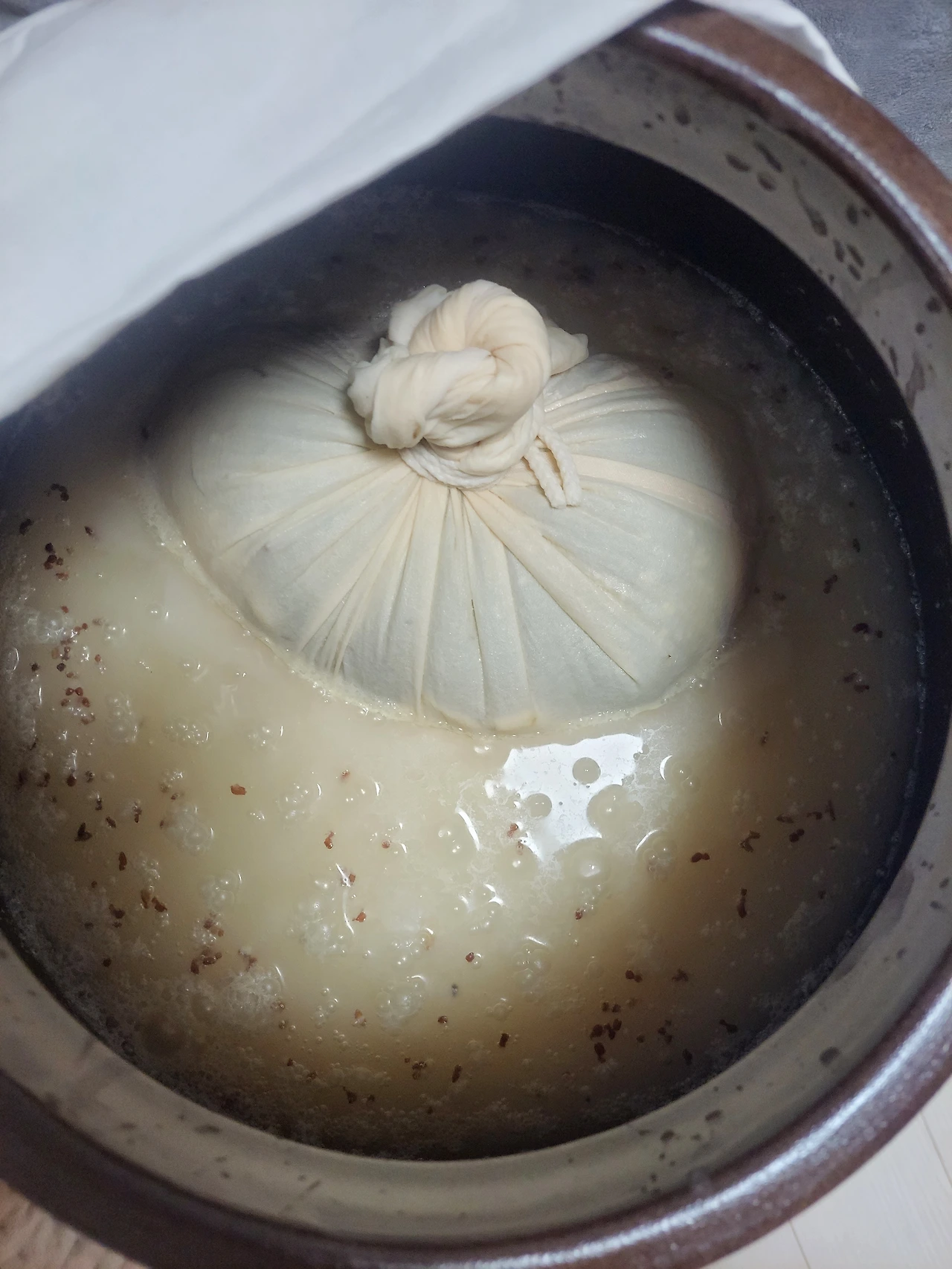 술이 익어가고 있는 항아리에 귀를 기울이니 합창 소리처럼 여기저기에서 뽀글뽀글 노랫소리가 들린다. 하루새 항아리 속에서 열기가 느껴진다.