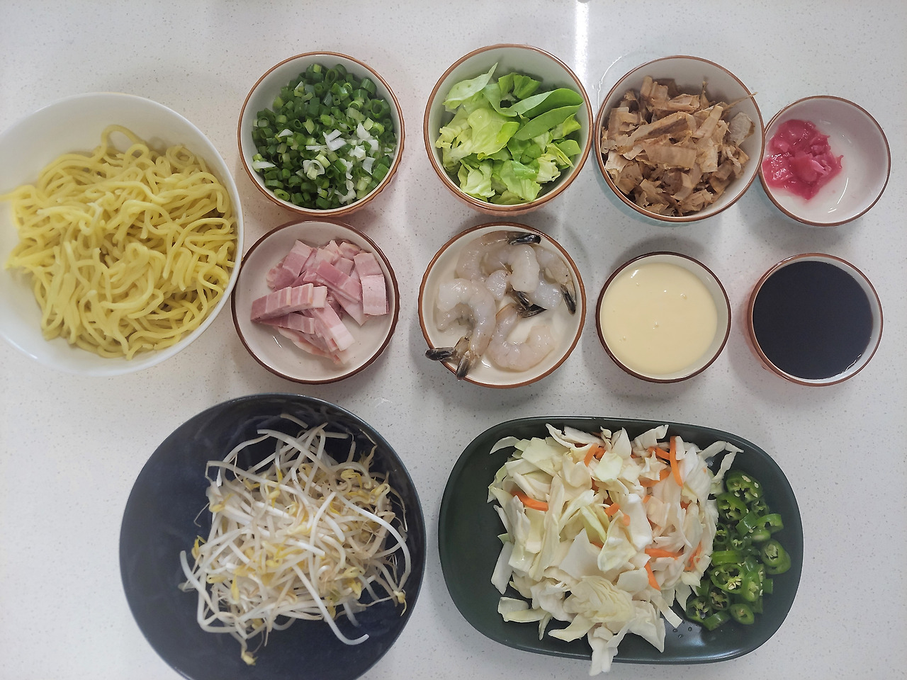 냉장고에 있는 재료 중 쪽파와 샐러드 채소를 추가해서 부족한 야채도 보충했다. 나중에는 오징어와 패주를 넣고 만들어봐야겠다.