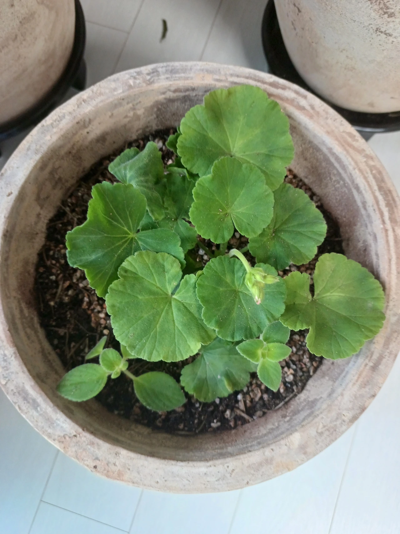 조건만 잘 맞으면 사철 꽃을 볼 수 있기 때문이다. 관목 하기도 쉬워 화분에 옮겨 심고 햇빛과 통풍에 신경 쓰면 잘 자란다. 엊그제 처음 방문했던 카페 화단에 예쁘게 피어있는 제라늄 화분들이 반가워 한참을 앉아 보고 있으니 카페 주인장께서 관목 하기 편하니 나눠드릴게요~하셔서 덥석 감사합니다란 인사가 튀어나왔다. 몇 포기 뿌리를 챙겨 주셔서 받아와 로즈메리가 떠나 비어 있던 토분에 제라늄을 심고 자리를 잡아주며 잘 자라다오 마음을 담아 손길을 더했다. 하룻밤이 지나고 나니 작은 꽃망울이 싱그럽게 얼굴을 내밀었다. 새로운 환경에 적응했다는 인사 같아 미소로 답한다.