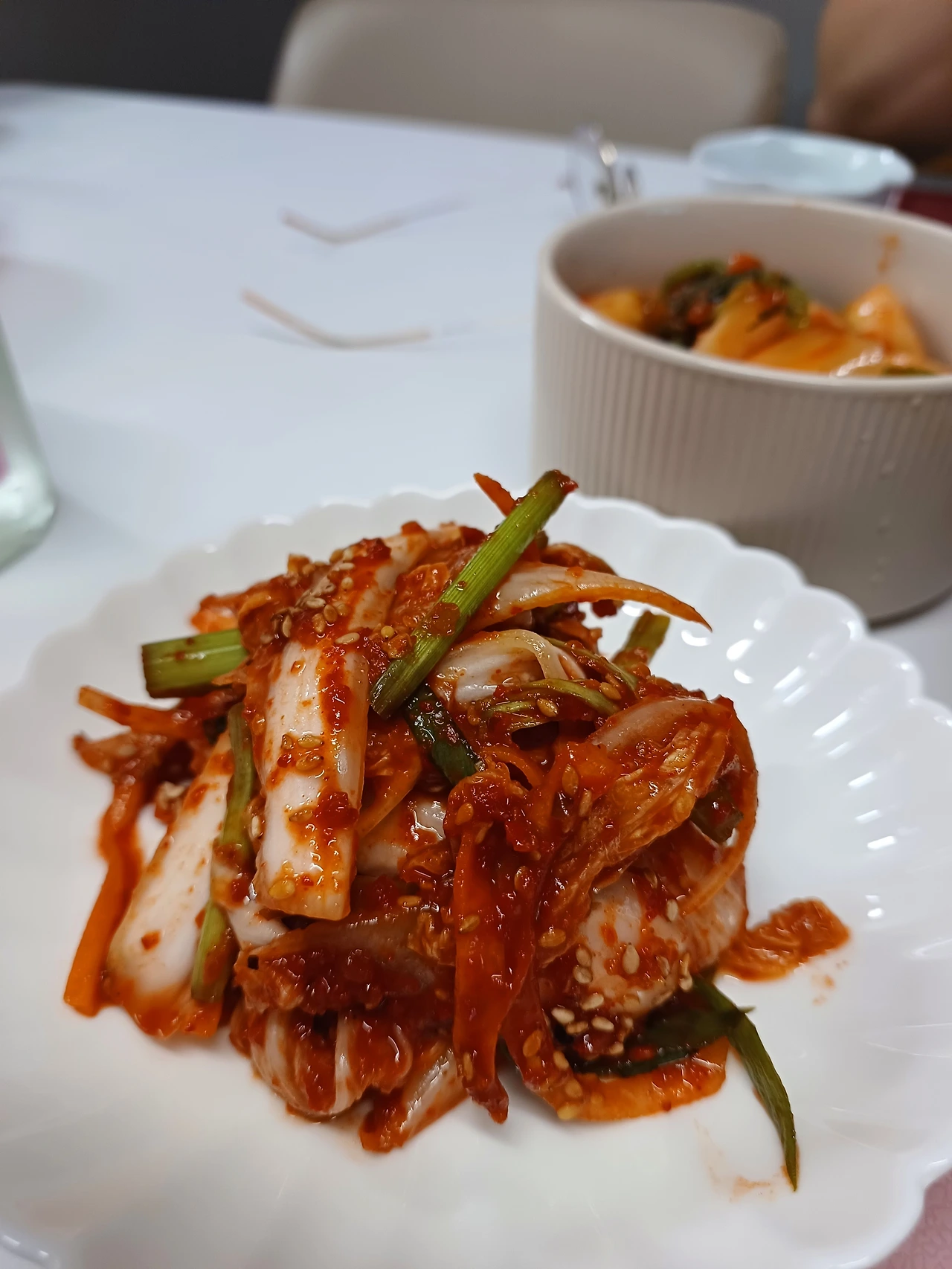 백숙이 익어가는 동안 텃밭에 있던 쪽파를 뽑아서 돌절구에 붉은 고추를 드륵드륵 갈아 속이 덜 찬 여름 배추와 함께 겉절이 같은 물김치를 담으셨다.