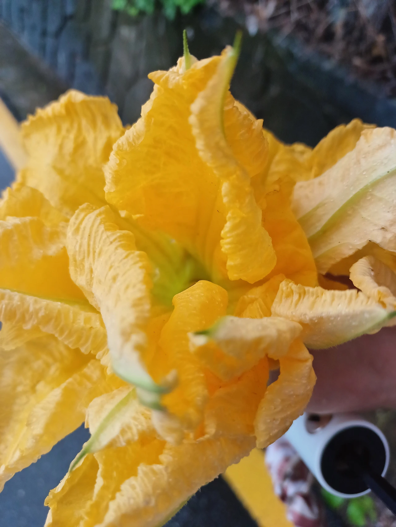 비에 젖어 초록이 더 짙어 보이는 텃밭 가랑이에 노랗게 익어가는 호박을 보니 , 어릴 적 호박꽃으로 세상에 없던 음식들을 만들어 주시던 할머니 손길이 그리워졌다.