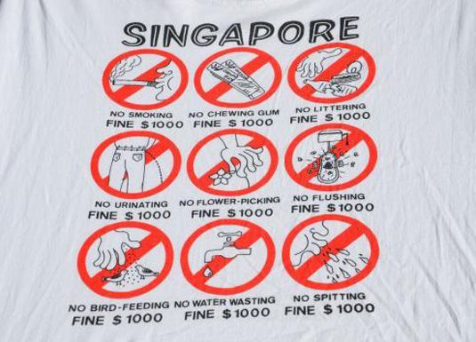 도로에 쓰레기를 버리거나 공공장소에서 침을 뱉다 적발되면 1000 SGD의 벌금이 부과된다.