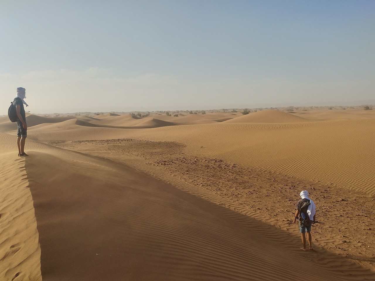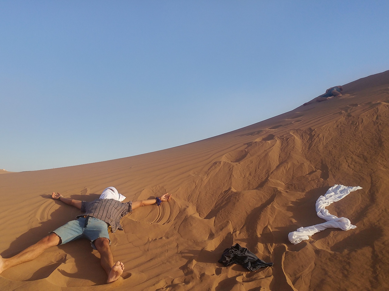 모래바람 소리밖에 들리지 않는 사막의 언덕에서 10분간 조용히 명상하고선, 친구들과 함께 각자가 알고 있는 명상법을 나누었다. 머릿속에 부유하는 잡생각들을 지우기 위해선 다양한 상상들이 동원될 수 있는데, 이를테면 나는 시냇물이 졸졸 흘러가는 모습을 그리는 와중 잡생각이 나타나면 자루에 넣어 낭떠러지로 던지는 상상을 했다. 마테오는 주로 풀포기를 하나씩 뽑는 상상을 하며 잡생각을 없앤다고 했다.