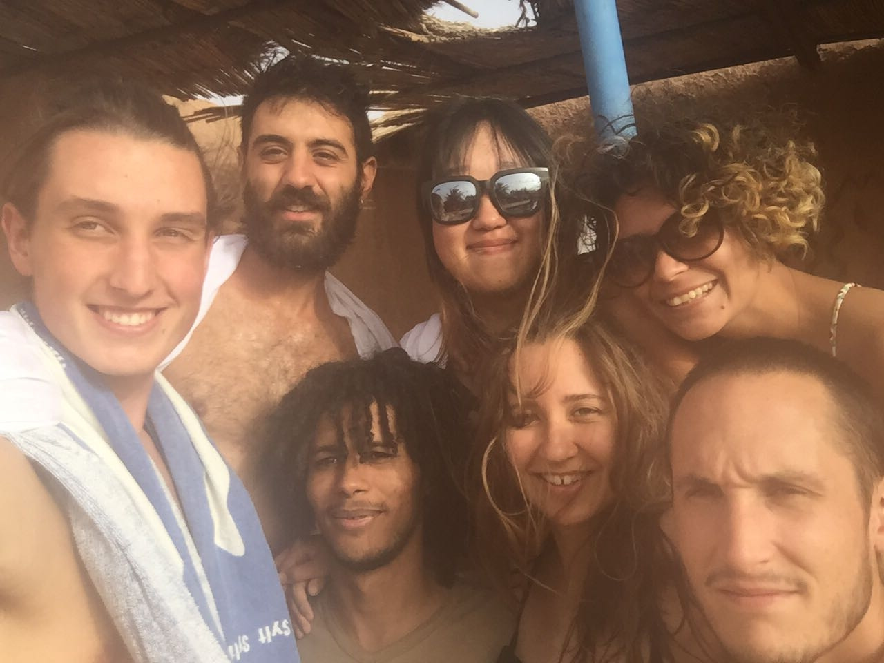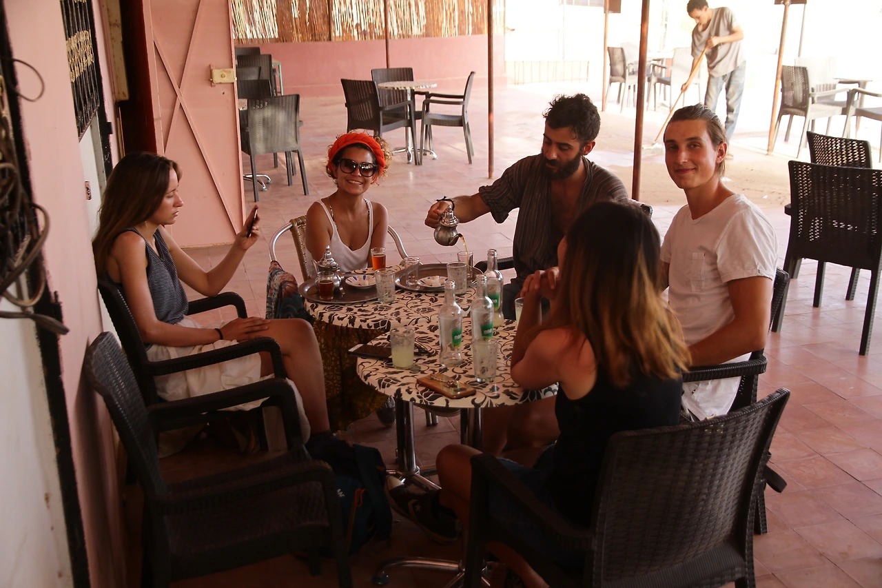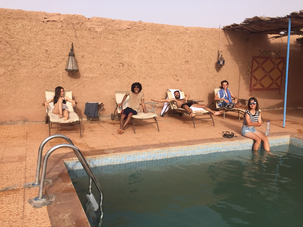 작업은 오전에만 진행하였으나, 한증막처럼 더운 김을 품어내는 흙집 속에서는 도저히 휴식을 취하기 어려웠으므로 오후에는 늘 마을로 나왔다. 물론 마을도 덥기는 매한가지였지만, 모래 한복판에 가만히 앉아 있는 것보다는 훨씬 나았다. 마을에 유일하게 존재하다시피 하는 호텔의 수영장에서 한참을 놀다가 어둑어둑해질 때쯤에야 다시 사막에 있는 아흐마드의 집으로 돌아왔다. 야니스와 마테오의 반복적인 강습으로 기초 수영을 익히게 된 나는 물을 잔뜩 먹으며 밝은 표정으로 헤엄쳤고, 그런 나의 모습을 본 친구들은 함박웃음을 지어 보였다.