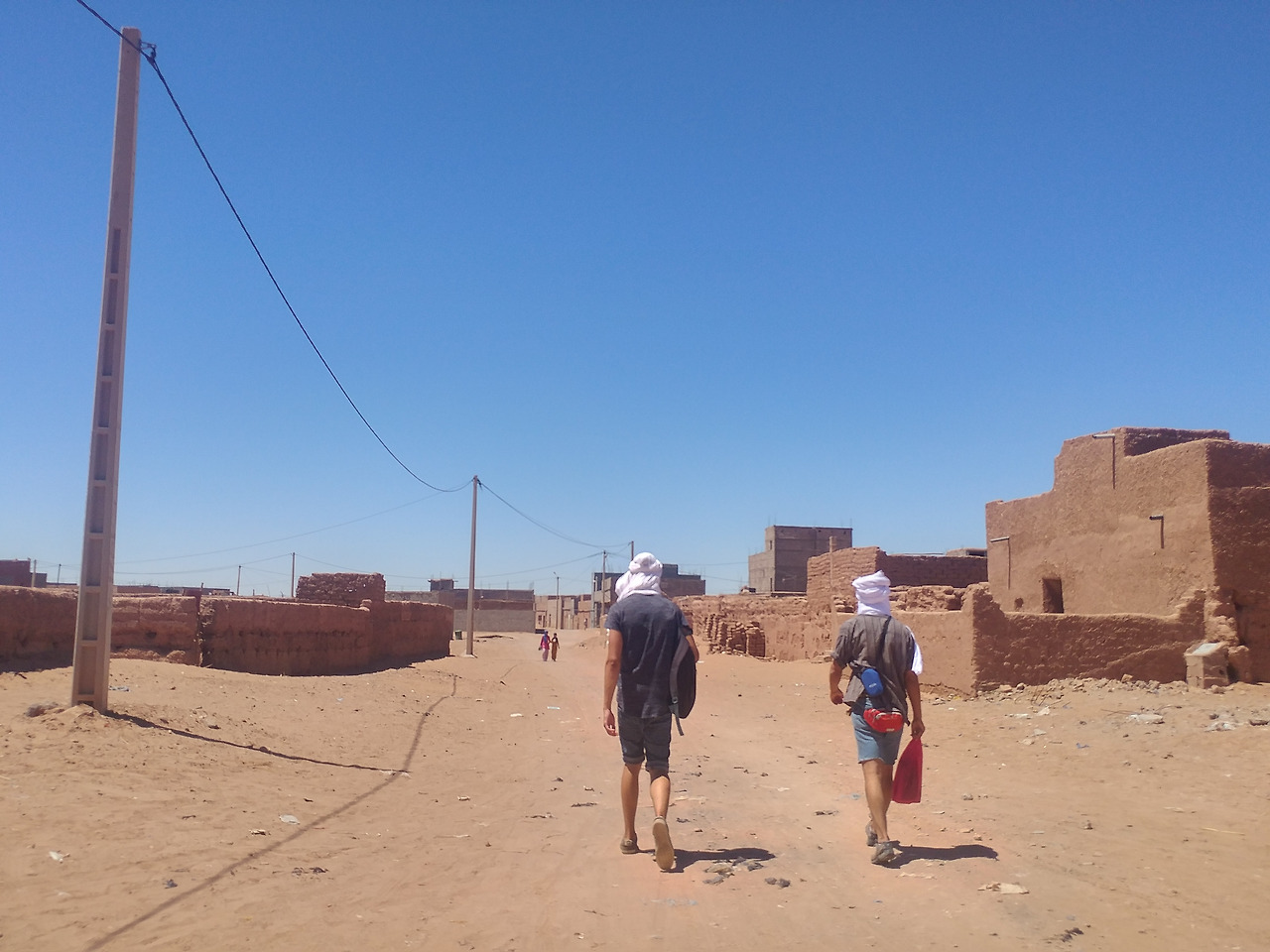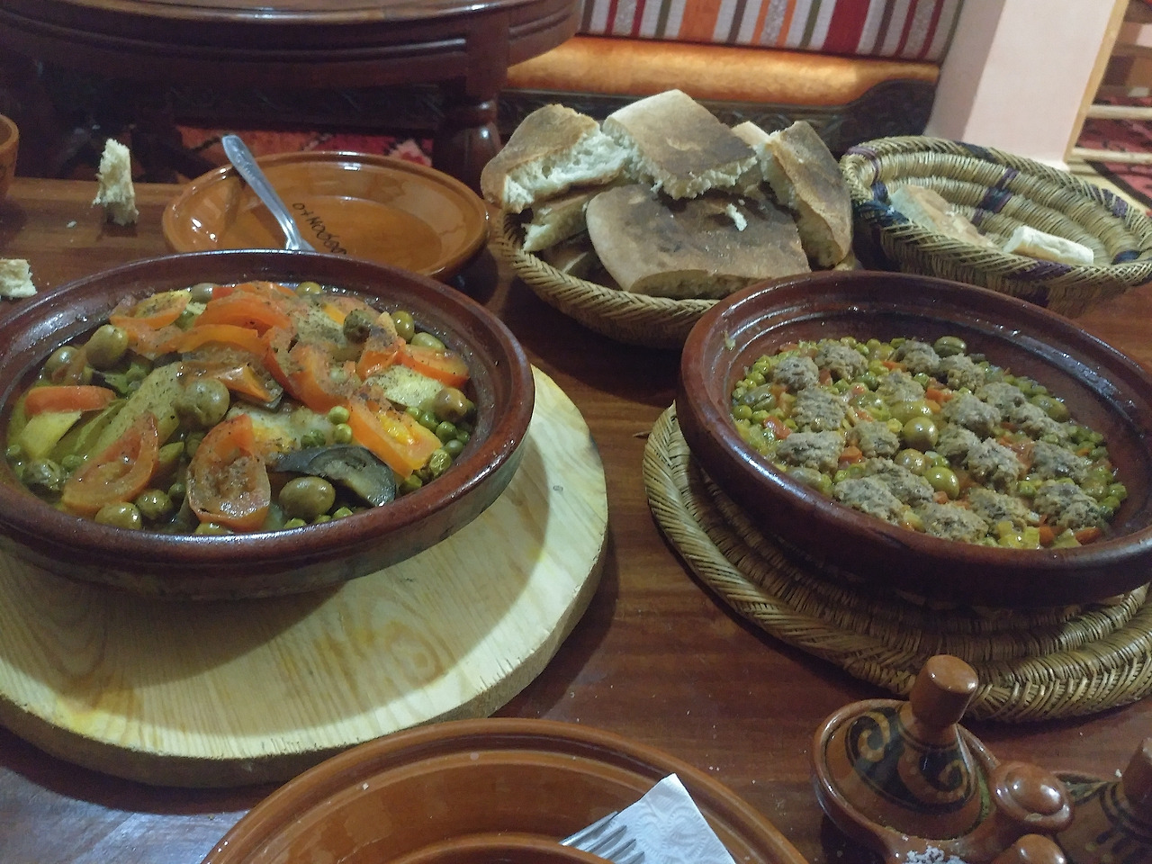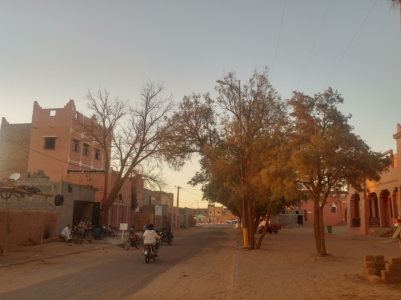 라파엘이 재빨리 예약해둔 덕에 저렴한 숙소에서 묵을 수 있었는데, 가는 길은 험했으나 내부는 무척 쾌적했다. 화장실을 사이에 둔 두 개의 열린 공간에 각각 1인용 침대 두 개와 2인용 침대 한 개가 있었다. 나와 야니스가 1인용 침대를, 마테오와 라파엘이 2인용 침대를 사용했다. 모로코 전통 요리인 타진(Tajin)을 맛보고선, 잠자리에 들기 직전까지 모여 앉아 내셔널 지오그래픽의 다큐멘터리나 아랍 영화를 눈요기로 보며 대화를 나누었다. 소금물로 샤워를 하던 마미드의 흙집에 비하면 너무나 호화스러운 공간이었다.