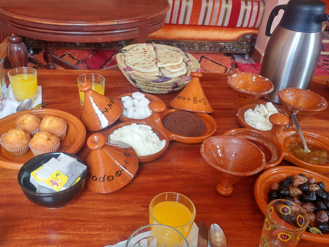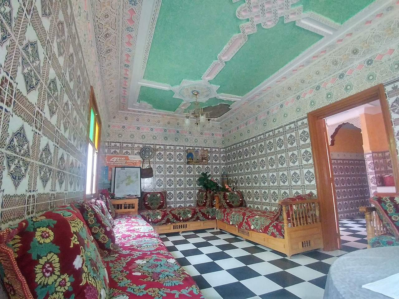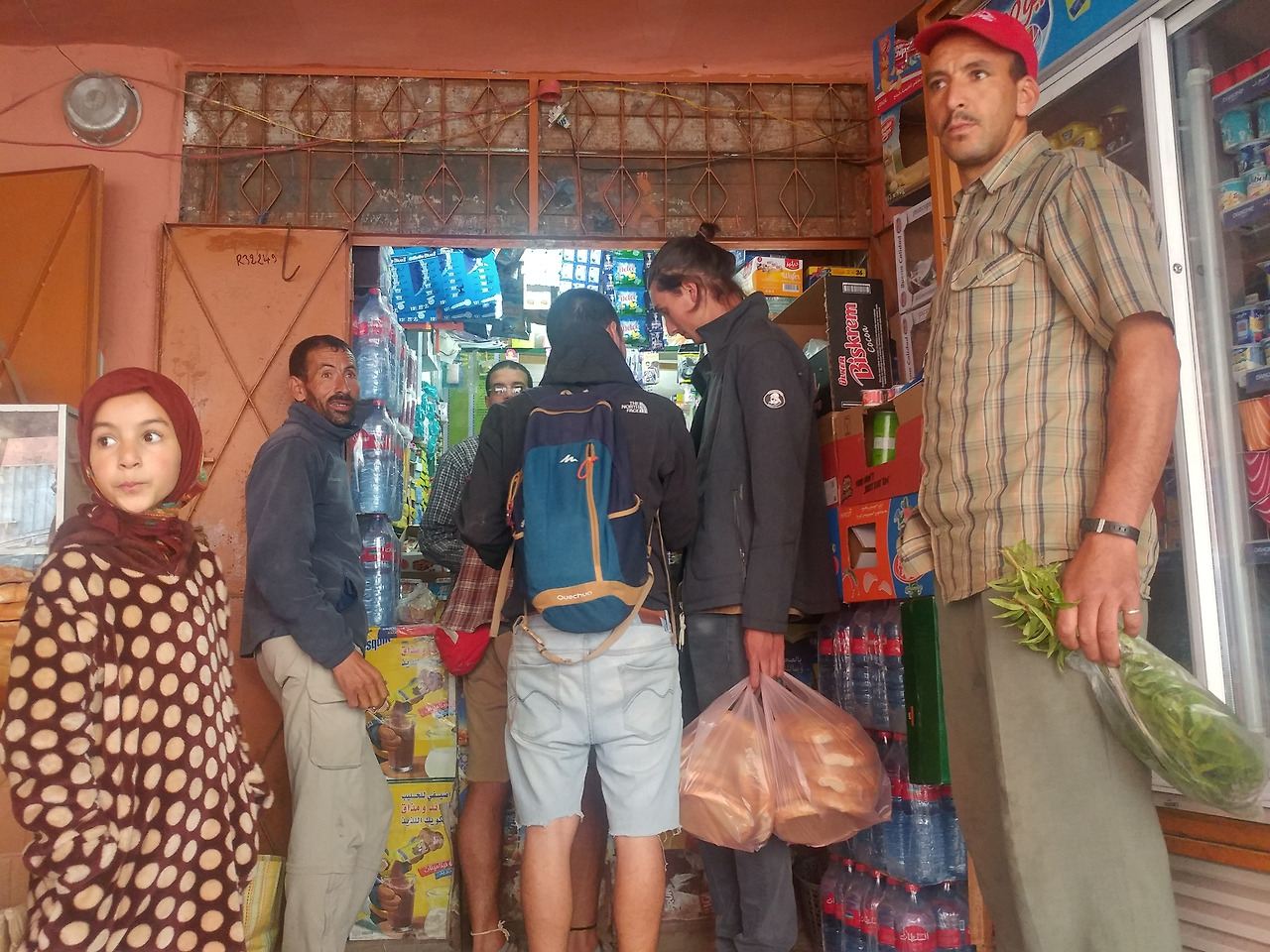 라파엘이 재빨리 예약해둔 덕에 저렴한 숙소에서 묵을 수 있었는데, 가는 길은 험했으나 내부는 무척 쾌적했다. 화장실을 사이에 둔 두 개의 열린 공간에 각각 1인용 침대 두 개와 2인용 침대 한 개가 있었다. 나와 야니스가 1인용 침대를, 마테오와 라파엘이 2인용 침대를 사용했다. 모로코 전통 요리인 타진(Tajin)을 맛보고선, 잠자리에 들기 직전까지 모여 앉아 내셔널 지오그래픽의 다큐멘터리나 아랍 영화를 눈요기로 보며 대화를 나누었다. 소금물로 샤워를 하던 마미드의 흙집에 비하면 너무나 호화스러운 공간이었다.