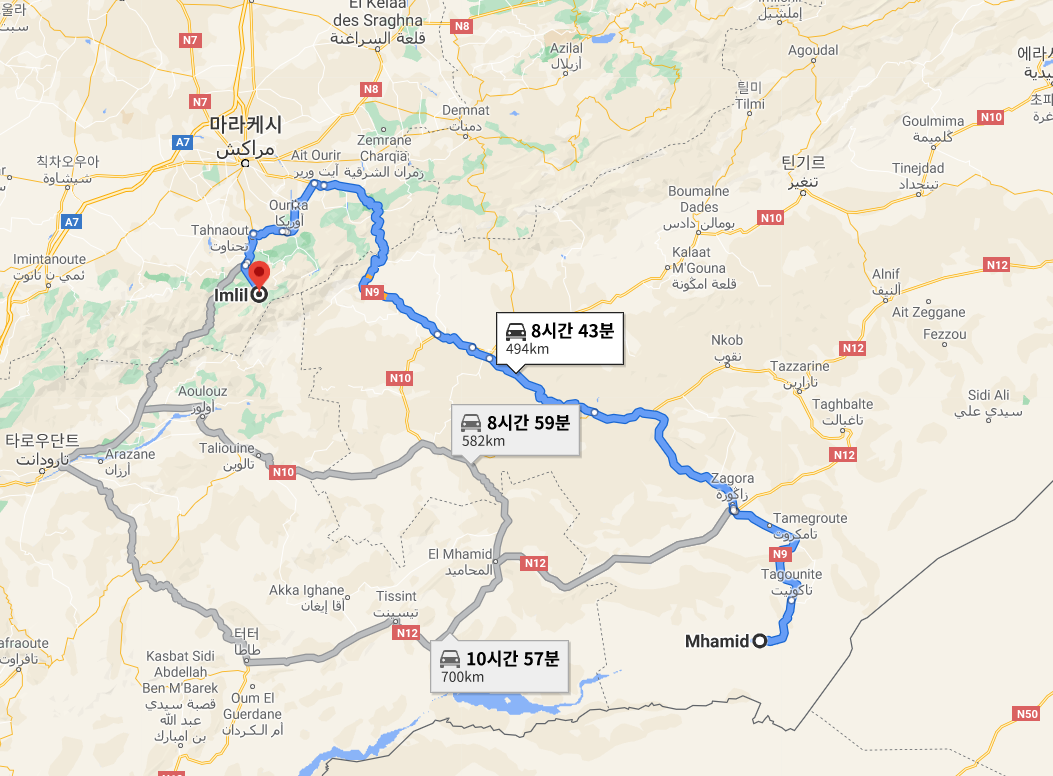 아틀라스(Atlas) 산을 향해 출발하기로 한 당일, 새벽에 일찍 일어나 씻은 뒤 미처 싸지 못한 짐들을 정리했다. 우리를 시외버스 터미널까지 데려다주기로 한 아브도('오해해서 미안해'편 참고)는 새벽 다섯 시가 되기도 전에 찾아와 짐 싸는 걸 묵묵히 도와주었다. 야니스와 마테오, 라파엘과 함께 마라케시(Marrakech)행 버스를 탔다. 마라케시에서 택시를 잡아, 고도 약 1,700m 지점이자 아틀라스산맥과 맞닿아 있는 고산 마을 이므릴(Imlil)로 이동할 작정이었다. 함께 지내는데 익숙해진 친구들과 여정을 함께한 덕에, 새로운 곳으로 향할 때도 마치 이미 가본 경험이 있는 사람처럼 평온한 마음을 유지할 수 있었다.