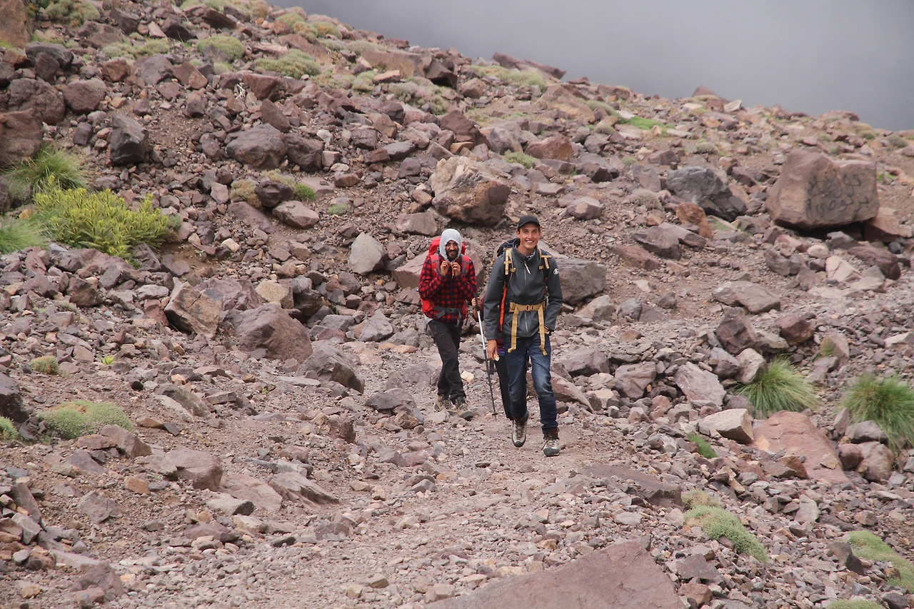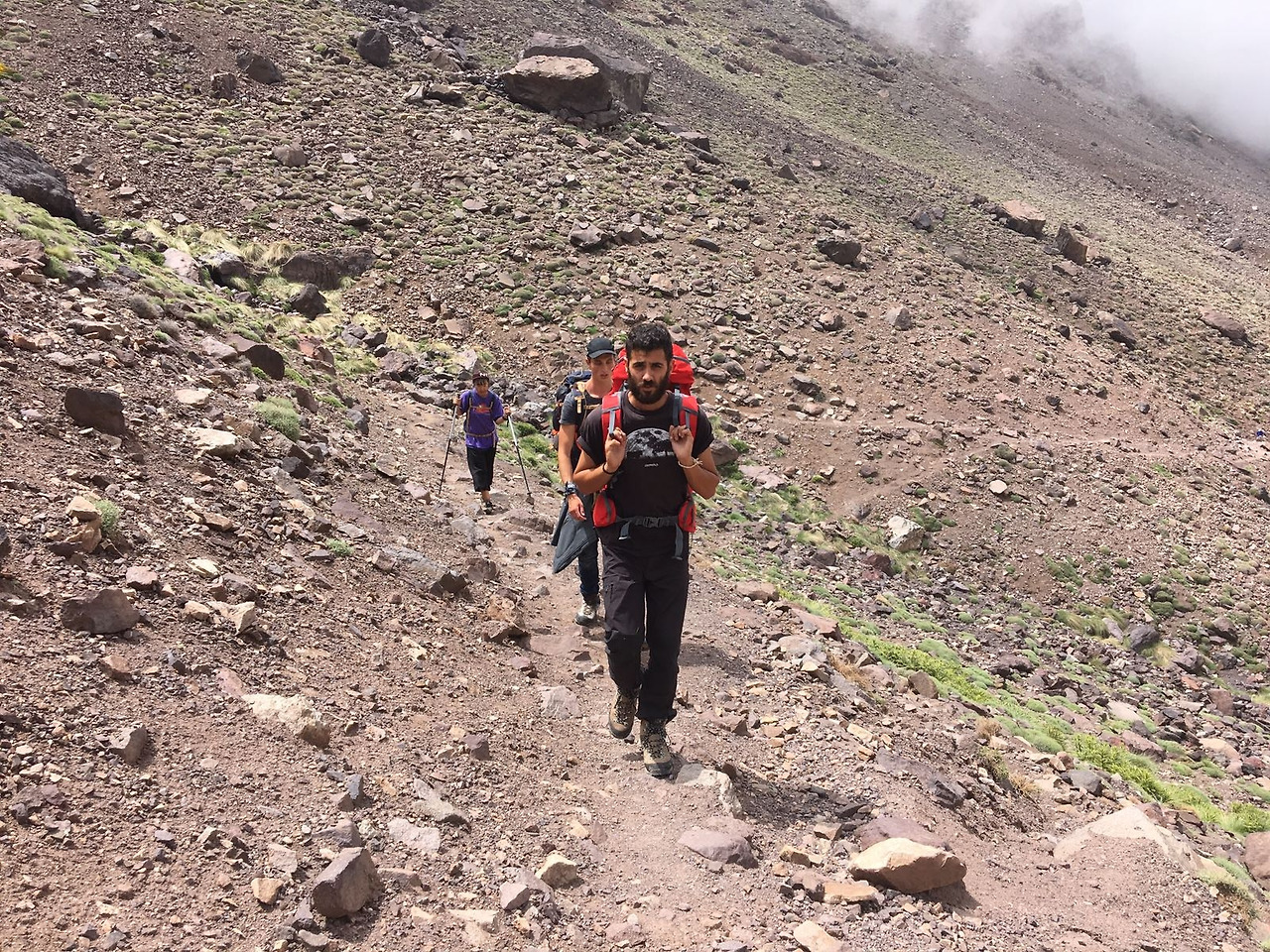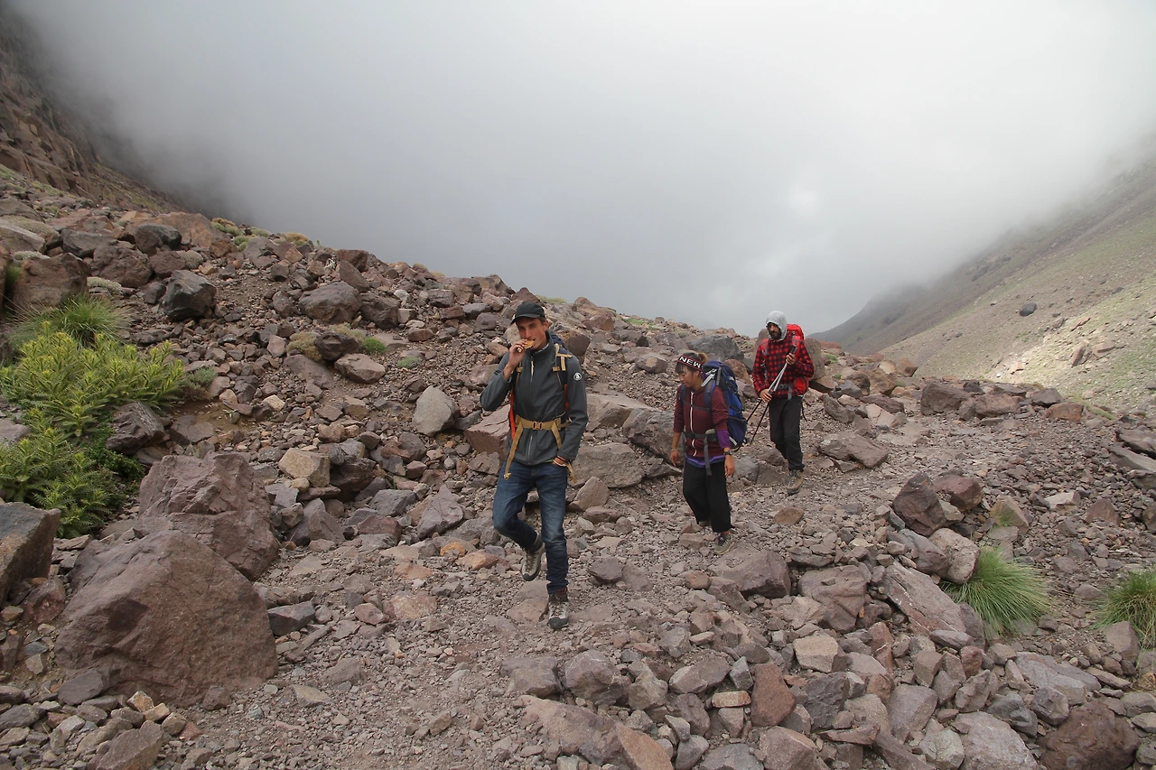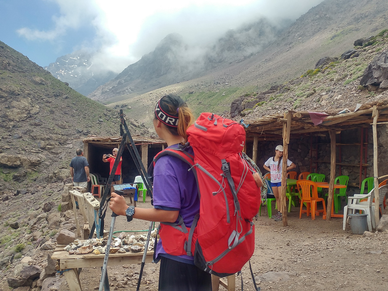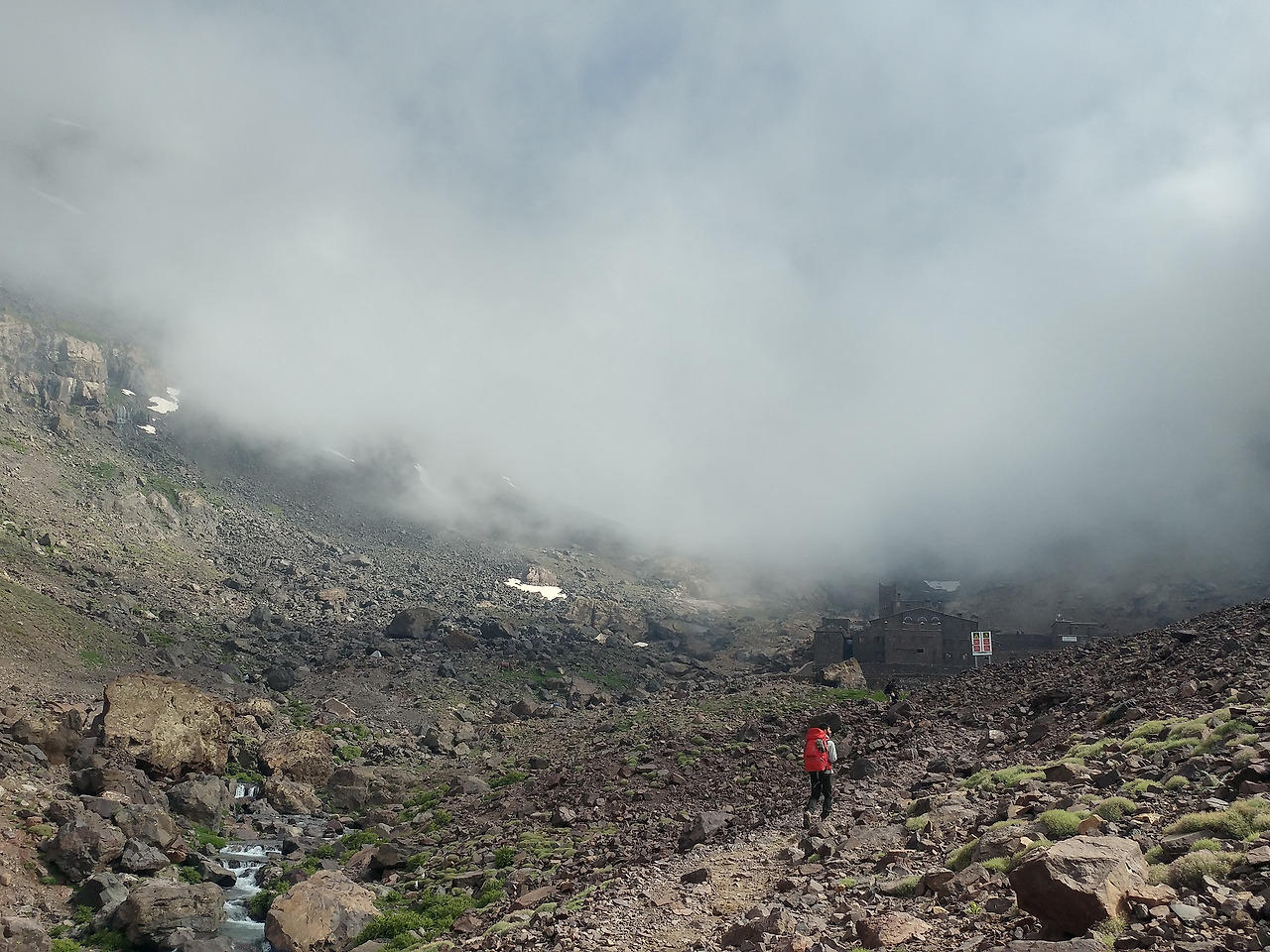 길은 세계 각국에서 온 등산객들로 넘쳐났다. 개중에는 전날 마을에서 만나 이미 친분을 쌓은 친구들도 있었다. 비교적 평탄한 길을 따라가다 보면 꼭대기까지 굉장히 가파른 경사로 이어지는 구간이 나오는데, 이 구간에 접어들기 바로 전인 약 3,200m 지점에 두 채의 산장이 있었다. 우리가 목표로 둔 투브칼 봉우리(Djebel Toubkal)는 산장을 지나 4,167m 지점에 있었다.