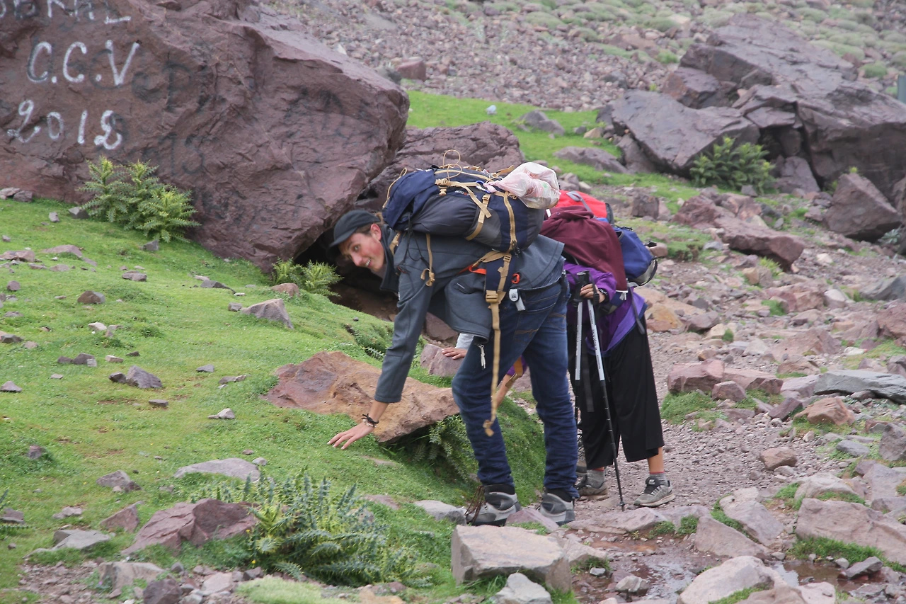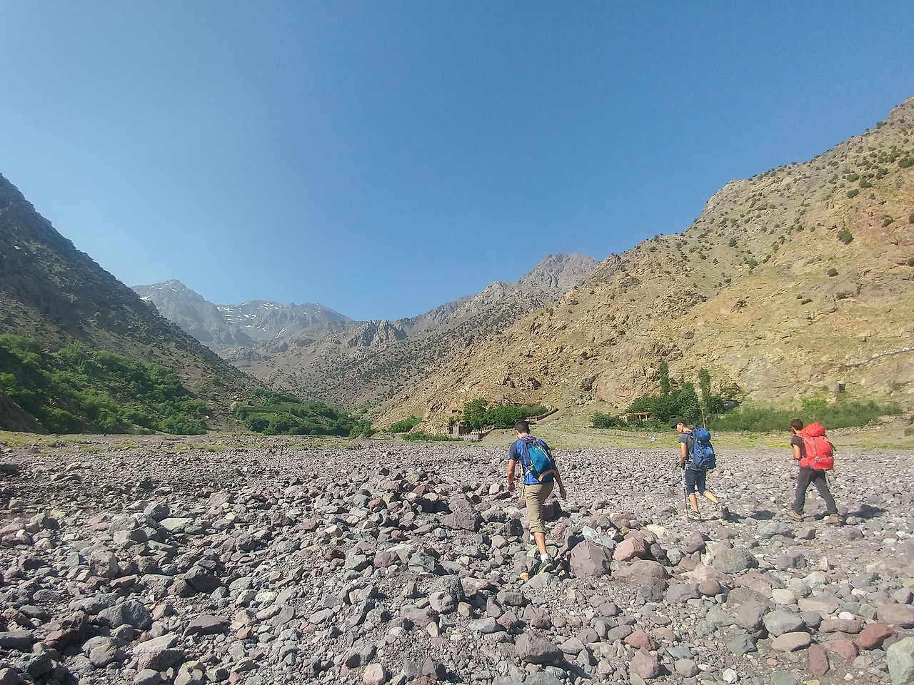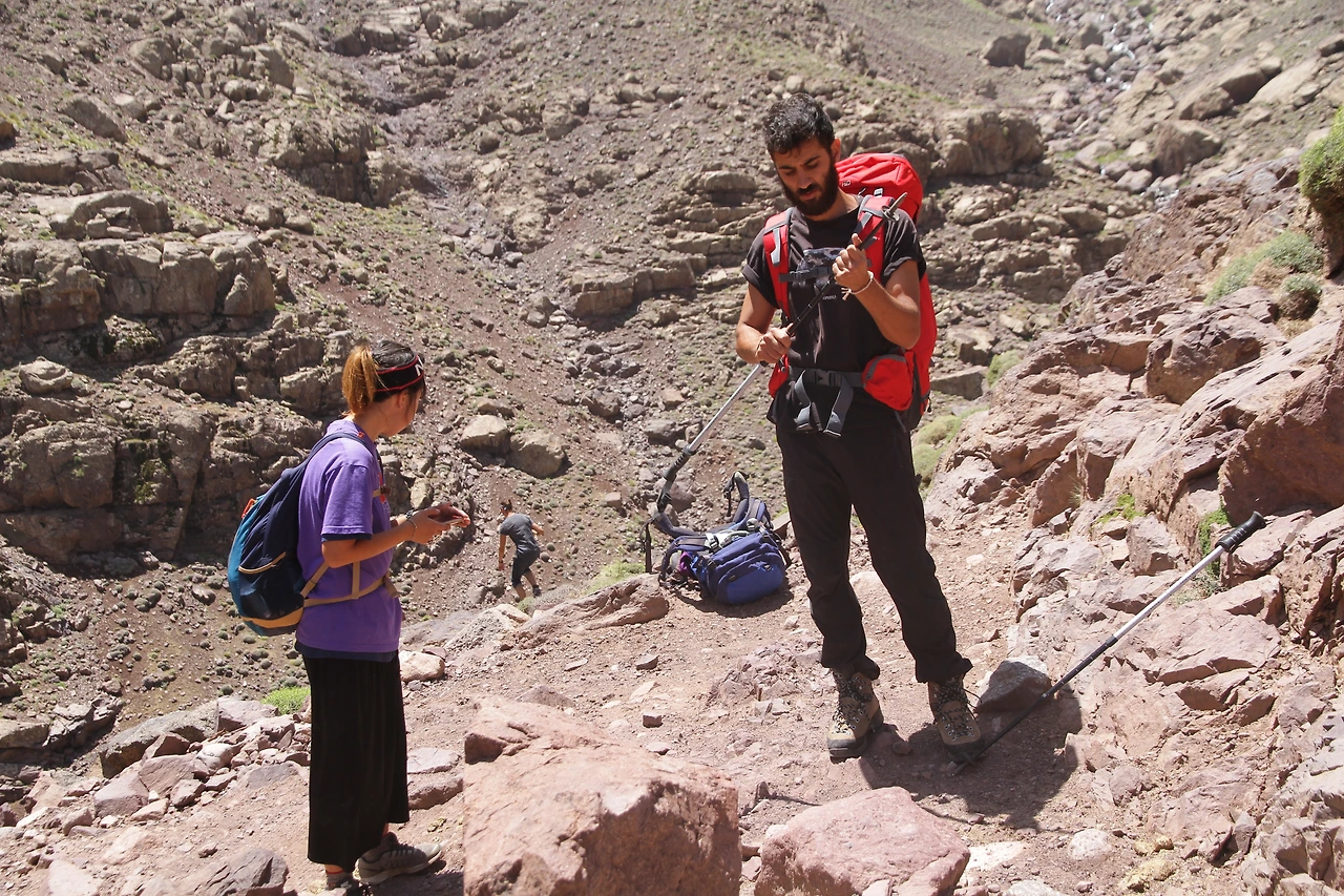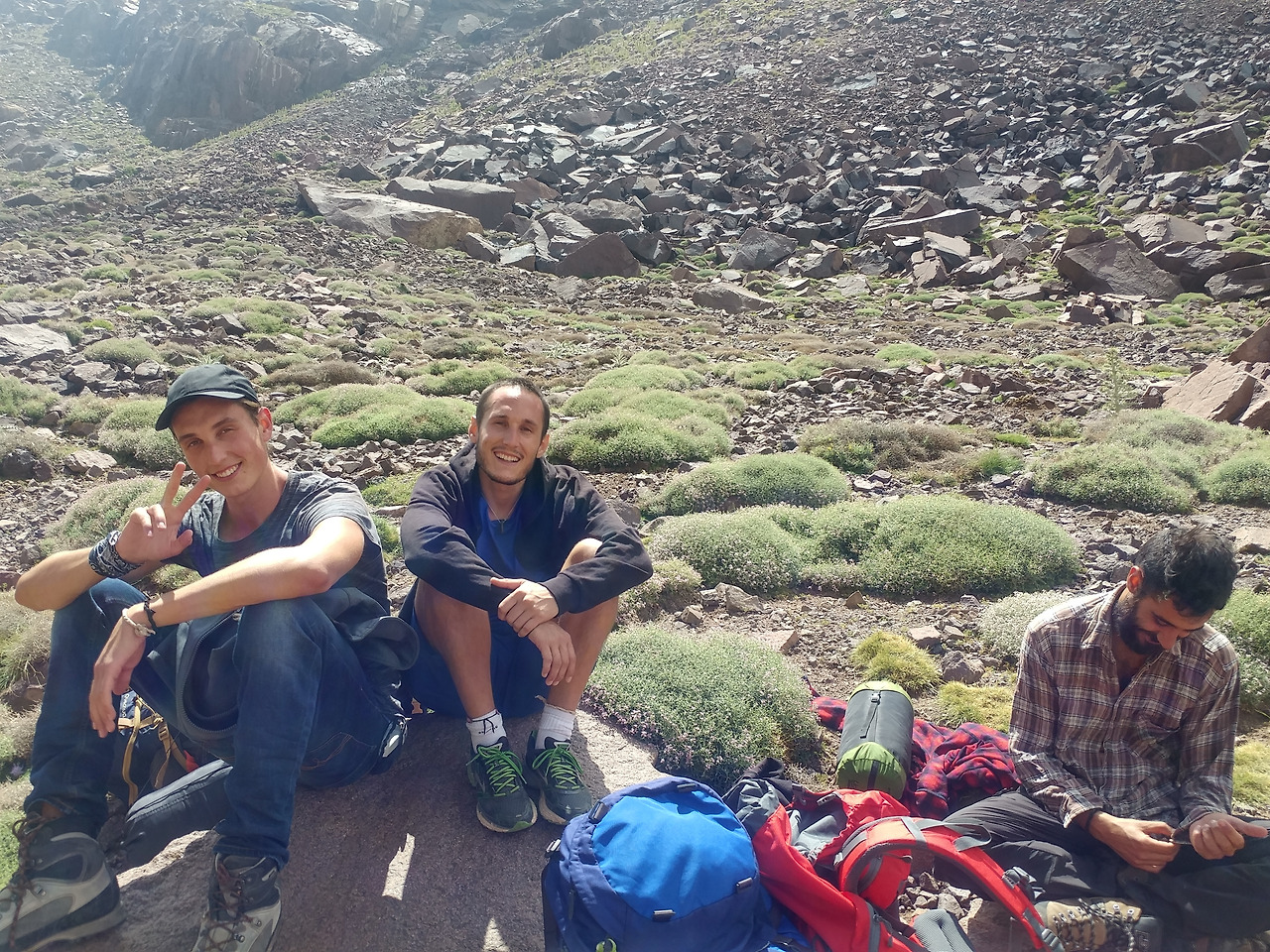 길은 세계 각국에서 온 등산객들로 넘쳐났다. 개중에는 전날 마을에서 만나 이미 친분을 쌓은 친구들도 있었다. 비교적 평탄한 길을 따라가다 보면 꼭대기까지 굉장히 가파른 경사로 이어지는 구간이 나오는데, 이 구간에 접어들기 바로 전인 약 3,200m 지점에 두 채의 산장이 있었다. 우리가 목표로 둔 투브칼 봉우리(Djebel Toubkal)는 산장을 지나 4,167m 지점에 있었다.