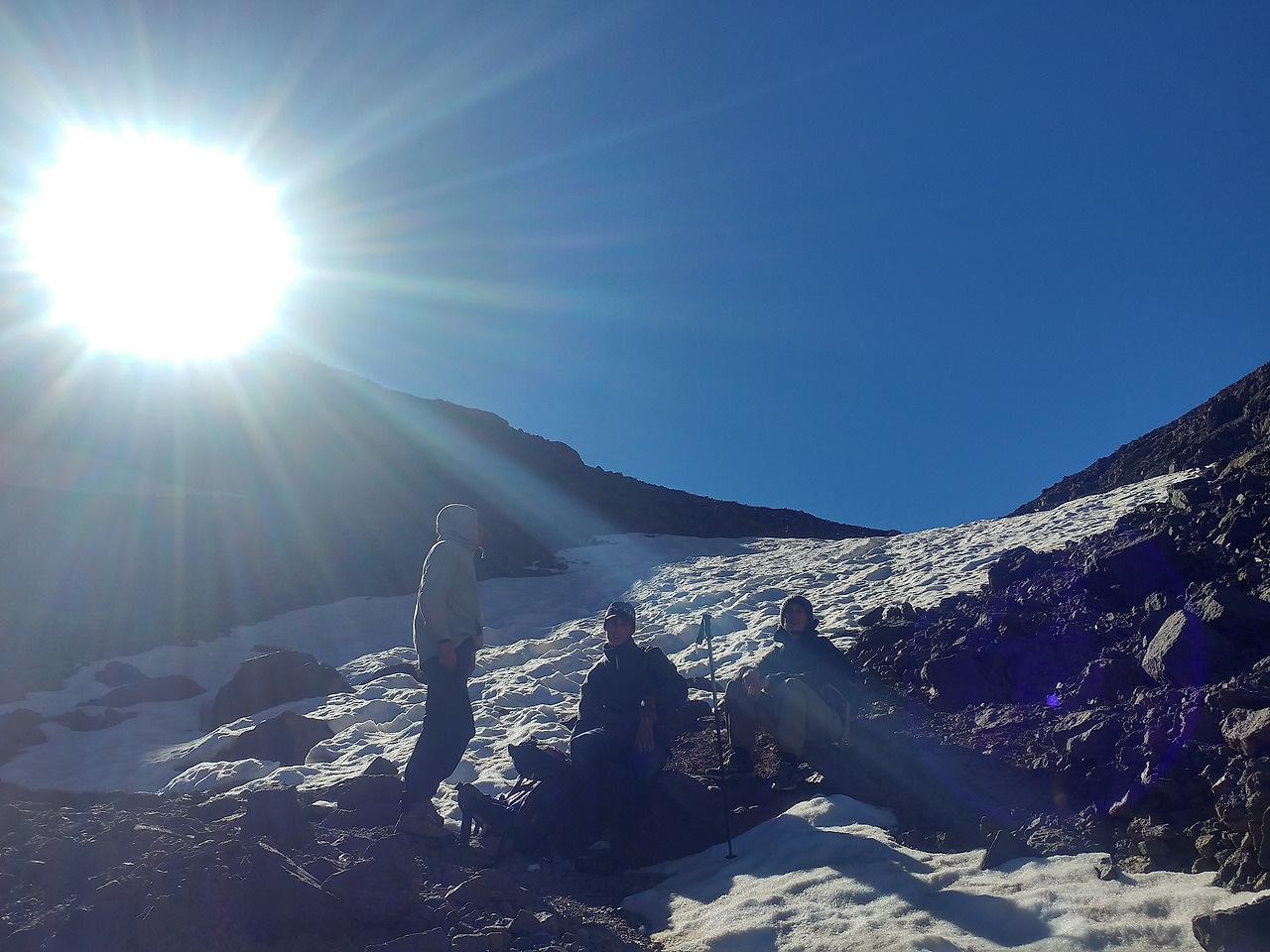 하루 안에 정상에 다다르는 건 불가능하다고 여겨 하룻밤을 산에서 묵기로 했다. 넉넉한 예산으로 여행하고 있던 야니스, 라파엘과는 달리 나와 마테오는 산장에 숙박할 비용조차 없었다. 침낭이 있으니 어디서든 잠을 잘 수 있지 않겠냐며 대책 없이 올라온 우리는 산장의 지배인들에게 바닥에서 자게 해 달라고 부탁하였으나, 즉시 거절당했다. 하는 수 없이 우리는 야니스와 라파엘에게 현금을 빌려 산장에서 묵기로 했다.