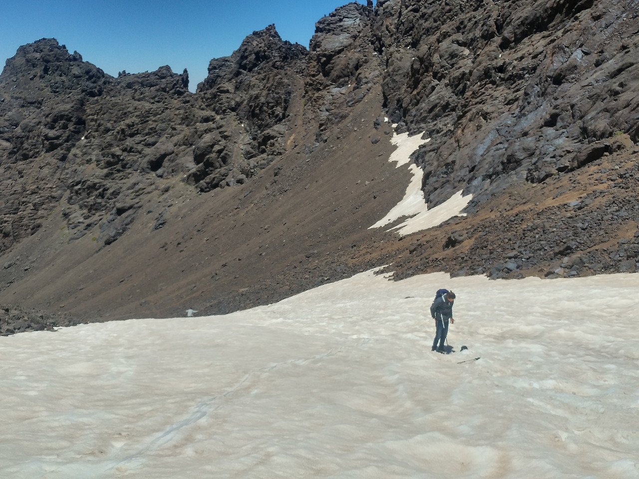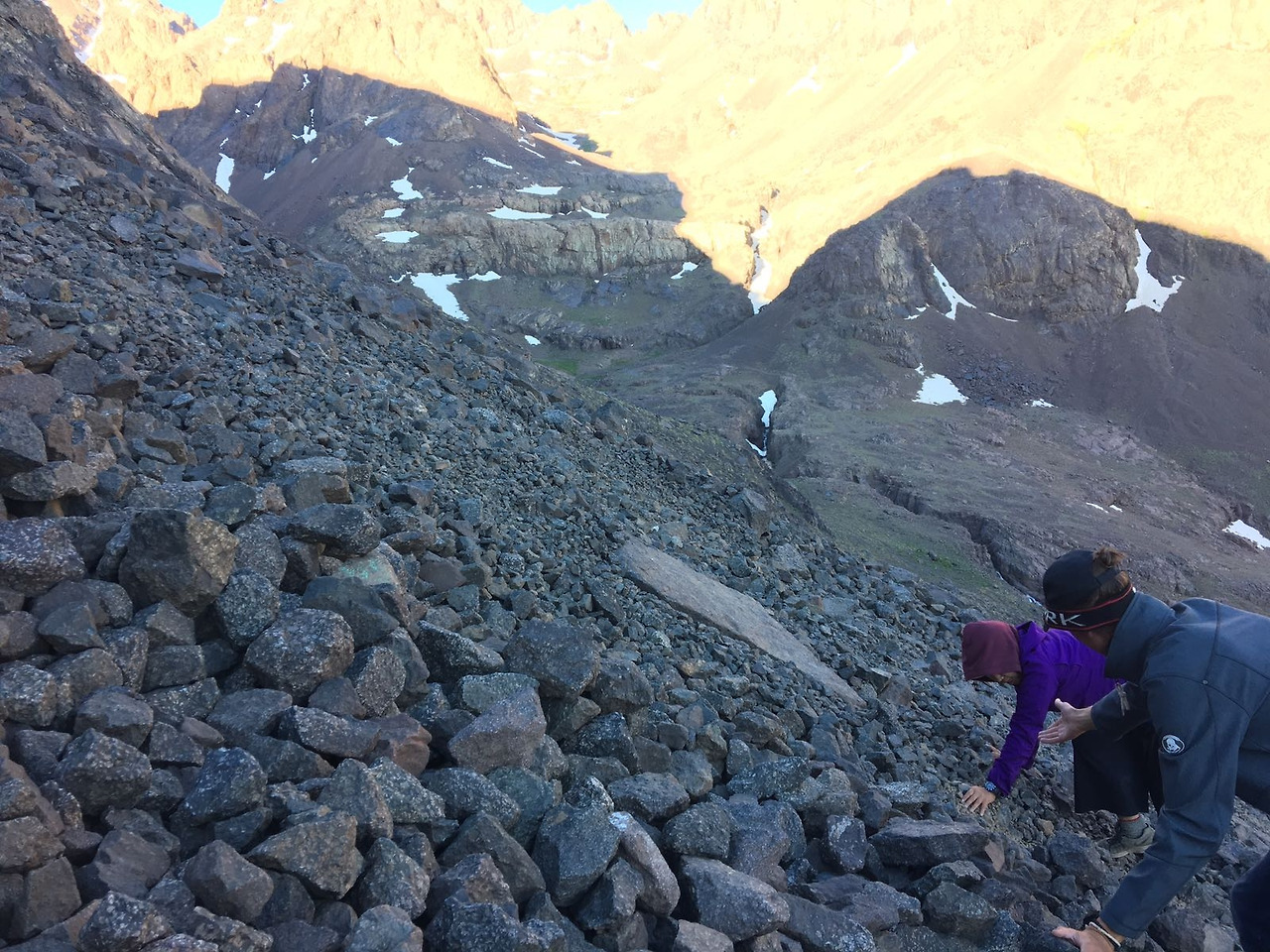 엉덩이가 무척 차가운 데다 삐죽 튀어나와 있는 돌 쪽으로 방향을 잘못 틀어 허벅지에 상처를 입긴 했지만, 끙끙대며 천천히 내려오는 것보단 훨씬 나았다. 얼마 전까진 사막의 모래 언덕에서 굴렀는데, 이번엔 눈밭이구나. 같은 모로코의 서로 다른 지역에 불과한데도 만나는 풍경이 극과 극이다. 마미드에선 사막, 아틀라스에선 눈.