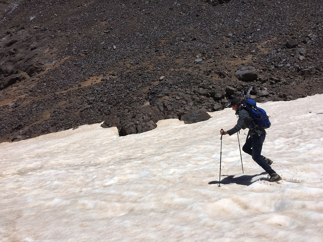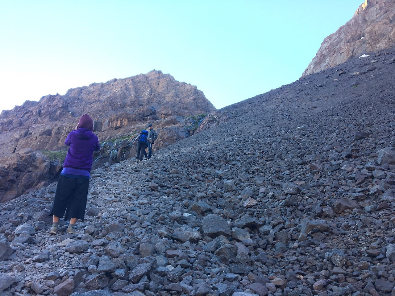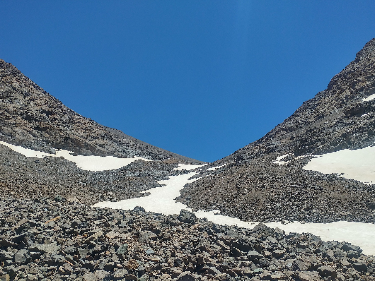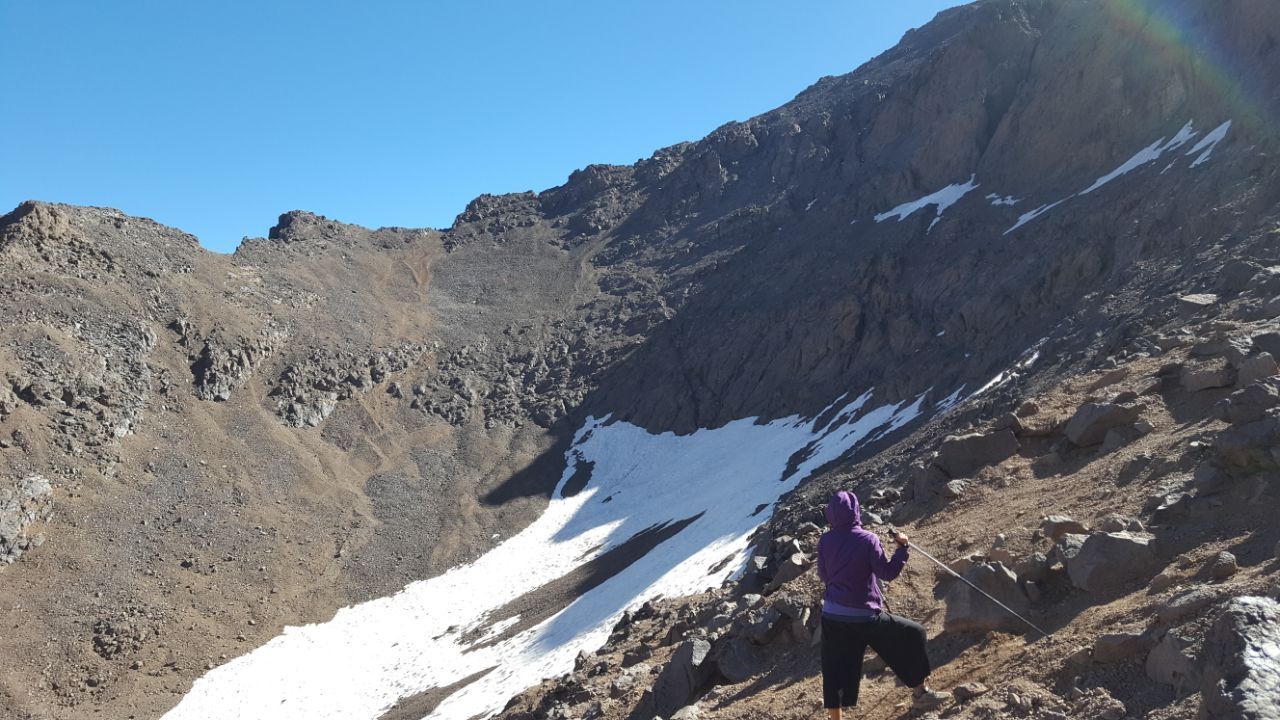 전날의 완만함은 온데간데없이, 산장을 지난 후로는 정상까지 험한 길들이 이어졌다. 무엇보다 굉장히 가팔랐다. 잘 정비된 등산길은커녕, 발만 디뎠다 하면 우르르 쓸려 내려가는 모래와 돌멩이들밖에 보이지 않았다. 길을 잘못 드는 바람에 돌밭에 들어섰는데, 지반에 박혀 있지 않은 돌들이라 밟을 때마다 발이 미끄러졌다. 다른 등산객들처럼 제대로 된 등산용 신발을 갖춘 것도 아니었기에 오르는 데 시간이 걸렸다. 가뿐한 몸으로 뛰다시피 걸었던 전날과는 달리, 지독한 두통과 나빠진 몸 상태 때문에 빨리 걸을 수가 없었다. 역시 힘들었을 친구들은 끊임없이 나를 격려해 주며, 물을 아껴야 하는 상황에서도 나에게만은 아낌없이 내어주었다.