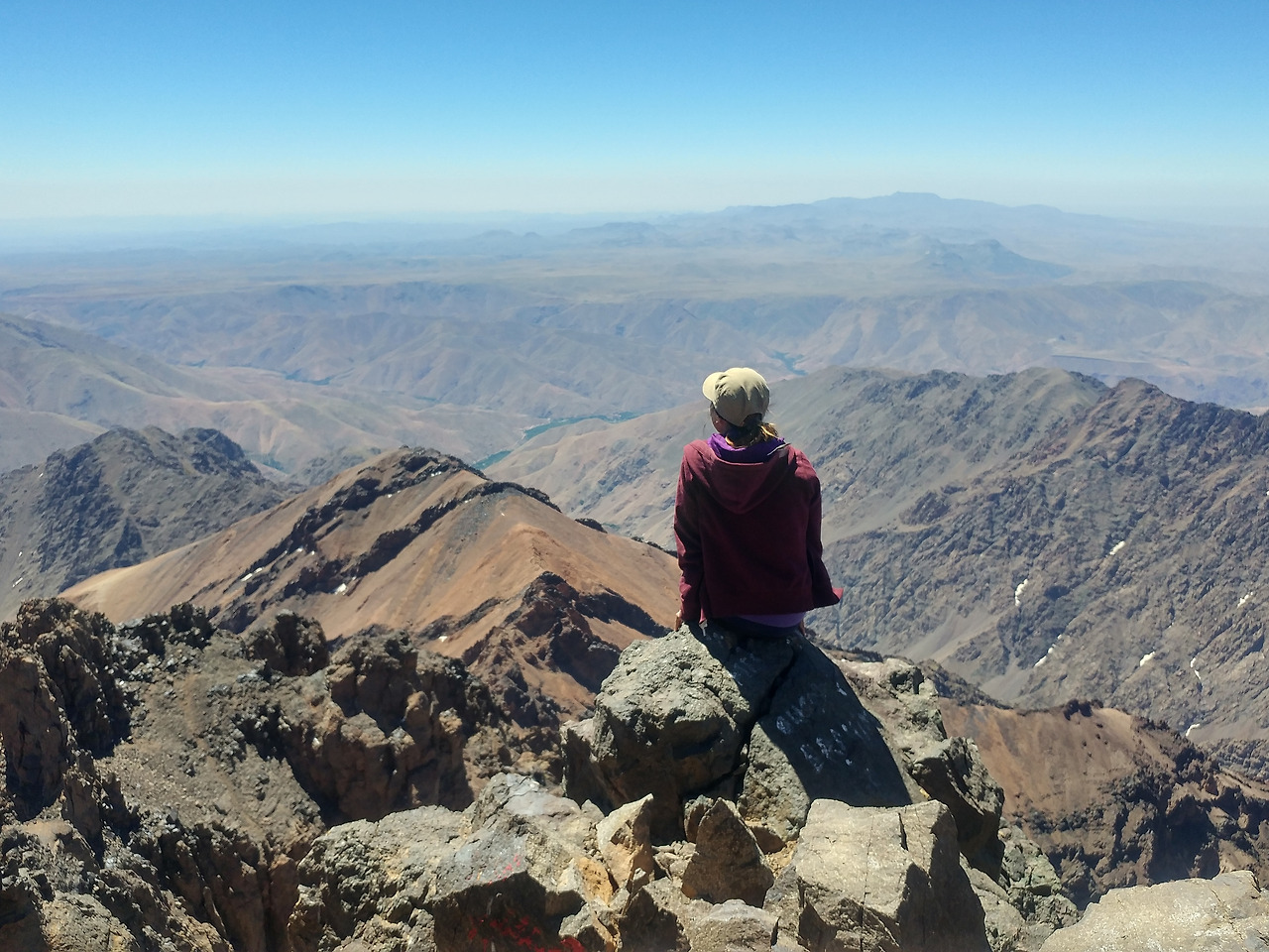햇볕이 따뜻하게 쬐는 정상에서 한 시간 정도 여유를 누렸다. 생전 처음 보는 풍경이 주는 웅장함에 압도되어 묵묵히 감상에 젖었다. 봉우리에는 삼각형 모양의 기념물이 세워져 있었고, 사방에는 깎아지른 돌산들이 아득하게 펼쳐져 있었다. 푸른 녹지로 뒤덮인 산에는 많이 올라 봤지만, 이처럼 돌과 모래로만 이루어진 산을 등반하는 건 처음이었다. 모로코에 발을 들일 때까지만 해도 북아프리카에서 제일 높은 곳에 올라서겠다는 어떠한 계획도 없었는데, 마음 맞는 친구들과 아틀라스 등반팀을 결성해 정상에 오른 걸 보니 ‘행복은 예기치 못한 곳에서 돌연 찾아온다’는 앙드레 지드의 말이 떠올랐다. 연신 환호성을 지르던 우리는 저마다 자리를 잡고 앉아 잠잠히 휴식을 취했다.
