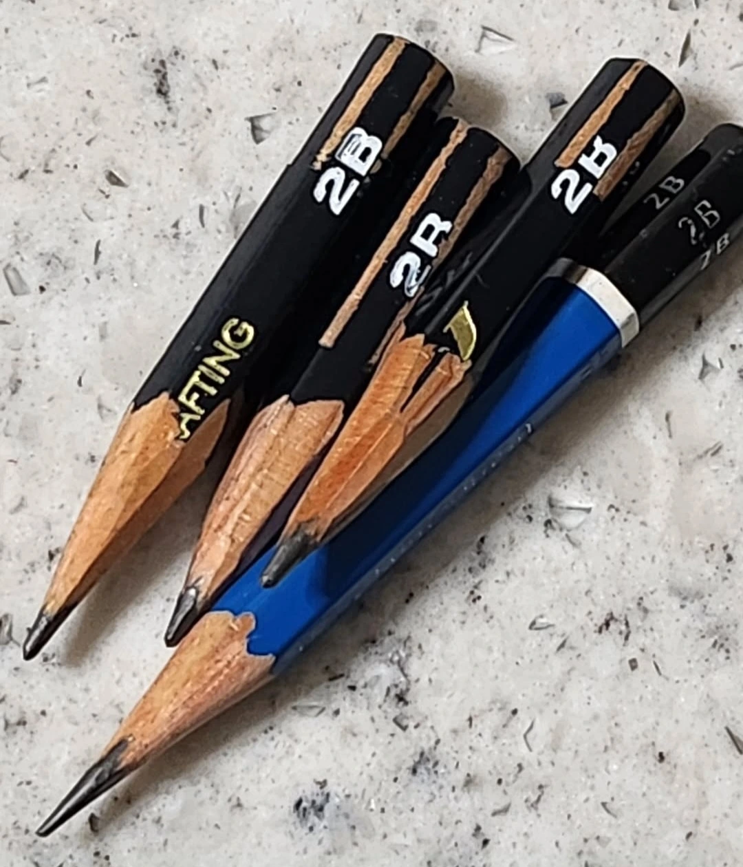 그림을 그릴 때 깍지를 끼워 그리다 보니 연필이 아주 짧아질 때까지 쓸 수가 있네요.