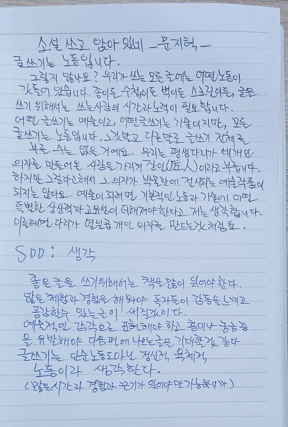 내가 하는 노동 중에 가장 좋아하는 것은 글쓰기니까.