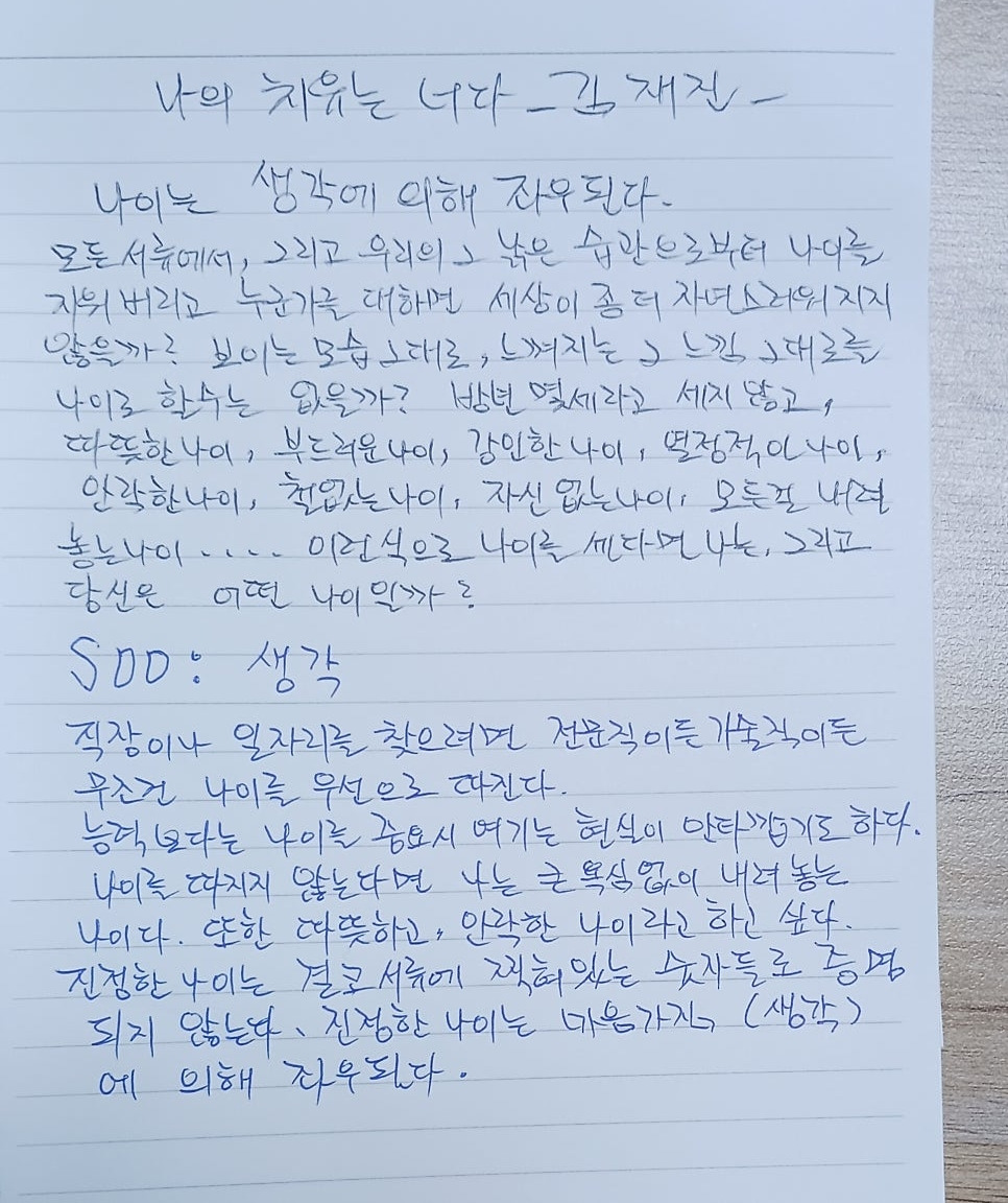 능력보다는 나이를 중요시 여기는 현실이 안타깝기도 하다. 나이를 따지지 않는다면 나는 큰 욕심 없이 내려놓는 나이다. 또한 따뜻하고 안락한 나이라고 하고 싶다.
