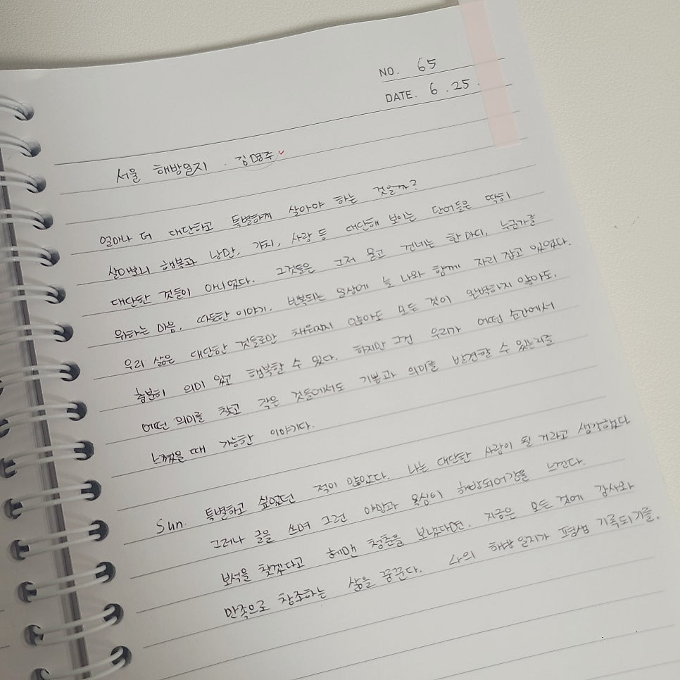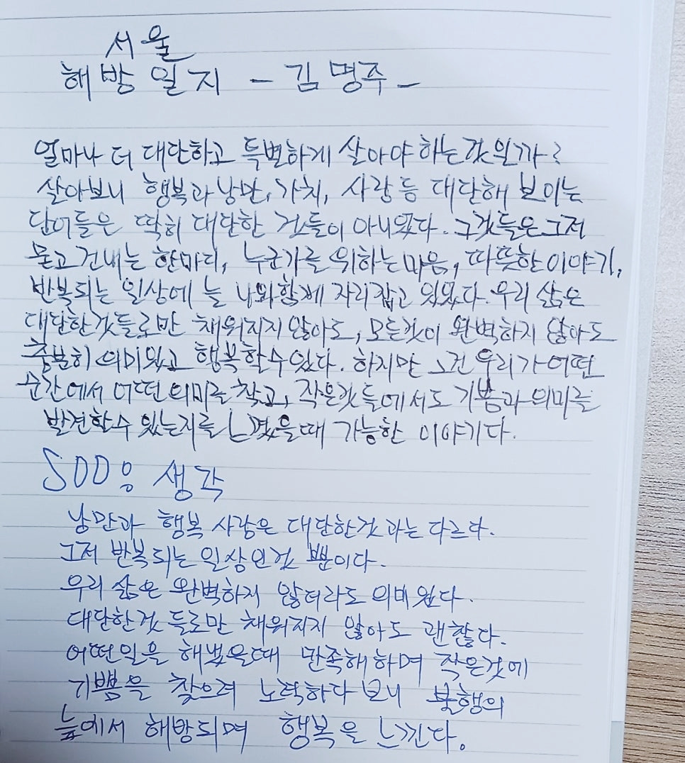 특별하고 싶었던 적이 많았다. 나는 대단한 사람이 될 거라고 생각했다. 그러나 글을 쓰며 그런 야망과 욕심이 해방되어 감을 느낀다.
