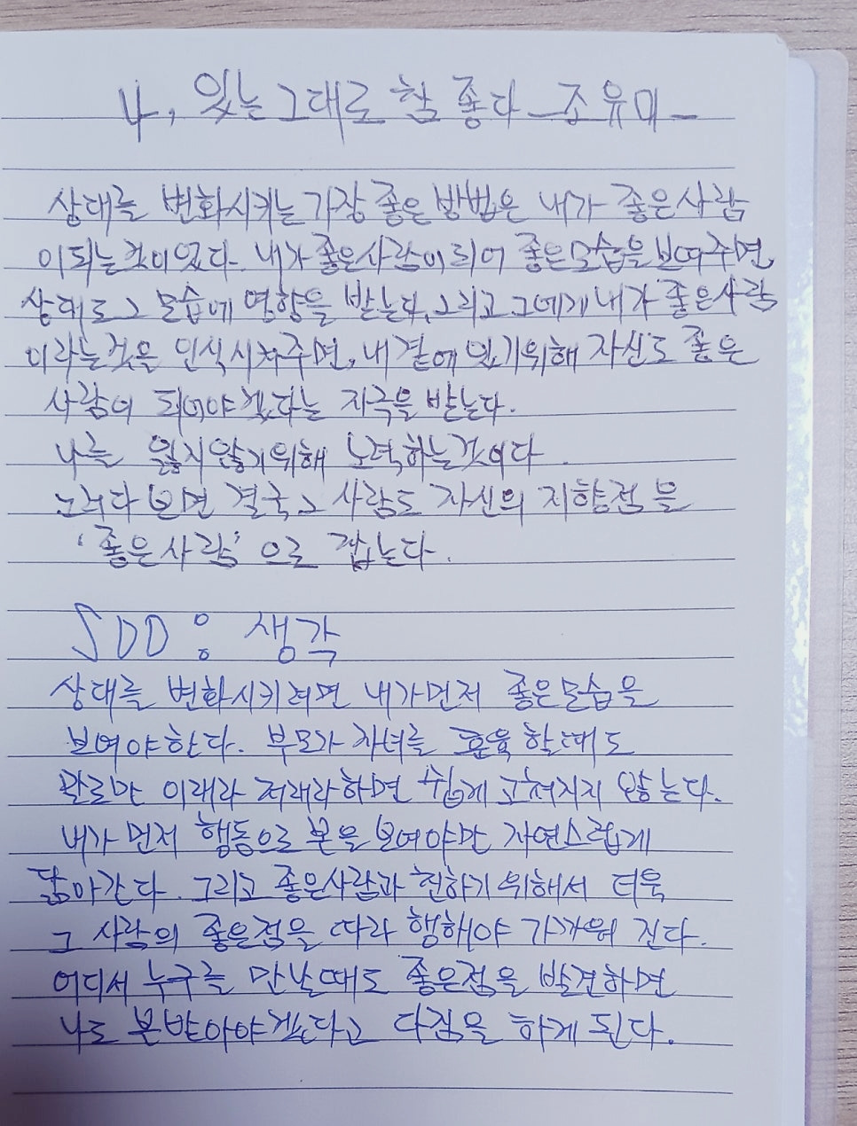 타인에게 바라는 것이 있다면 내가 그런 행동을 하자. 좋은 사람이 되려는 마음과 노력을 잃지 말자. 잊지 말자 :)