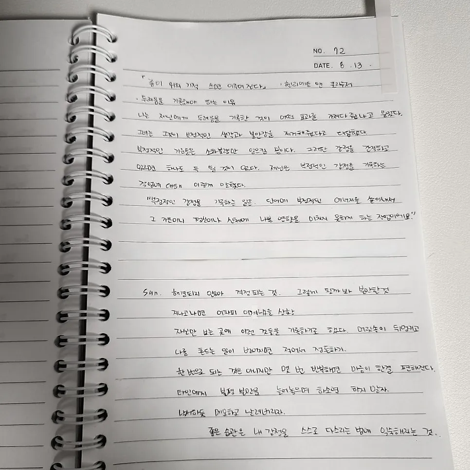 그러나 부정적인 감정을 기록하며 에너지를 쏟아내면, 건강에 나쁜 영향을 끼치지 않고 해소됨을 느낀다.