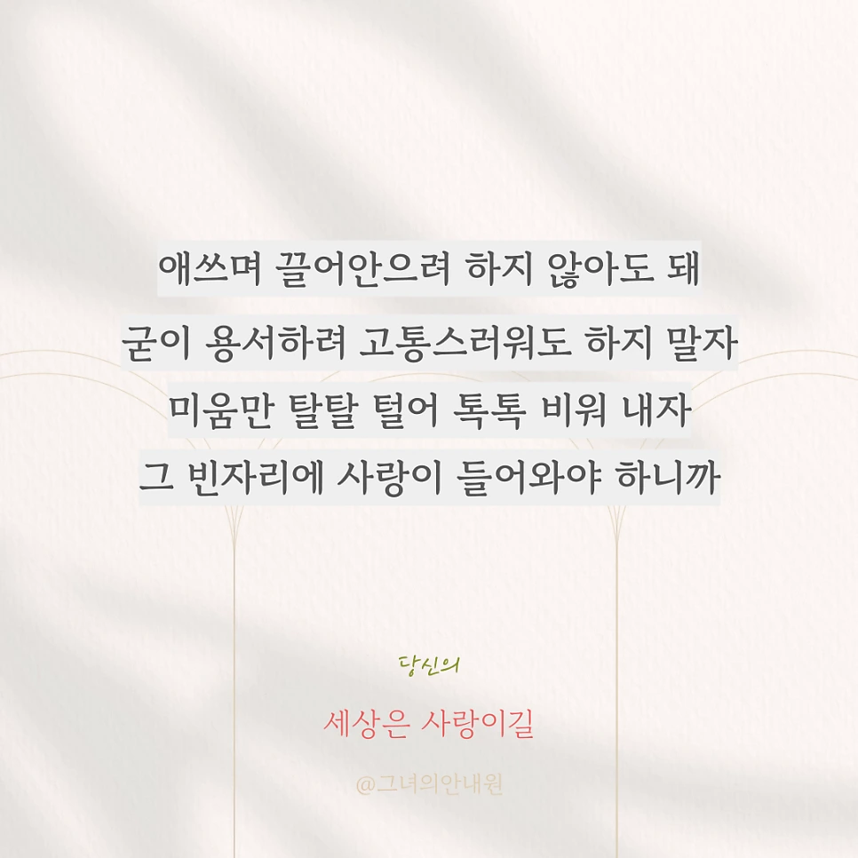 그러나 상대도 나의 부족한 점을 참아주고 있다는 걸 잊지 말자. 조용히 각자의 방에서 마음을 다스리자 :)