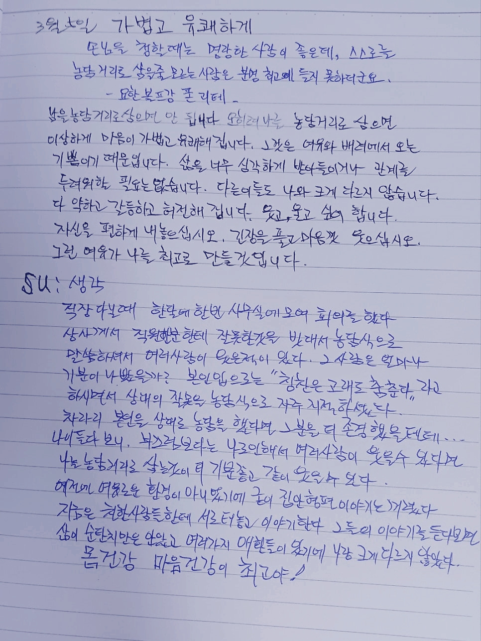 몸 건강 마음 건강이 최고야!
