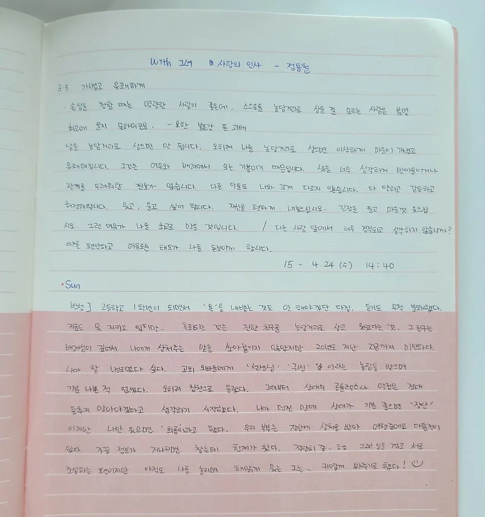 그러기 위해 매일 글로 마음을 다스려야겠지.