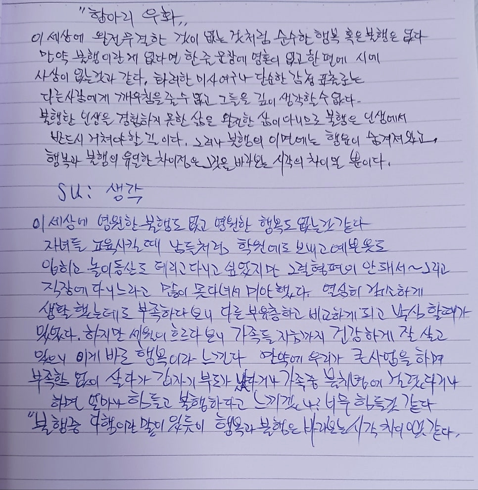 "불행 중 다행이란 말"이 있듯이 행복과 불행은 바라보는 시각 차이인 것 같다.