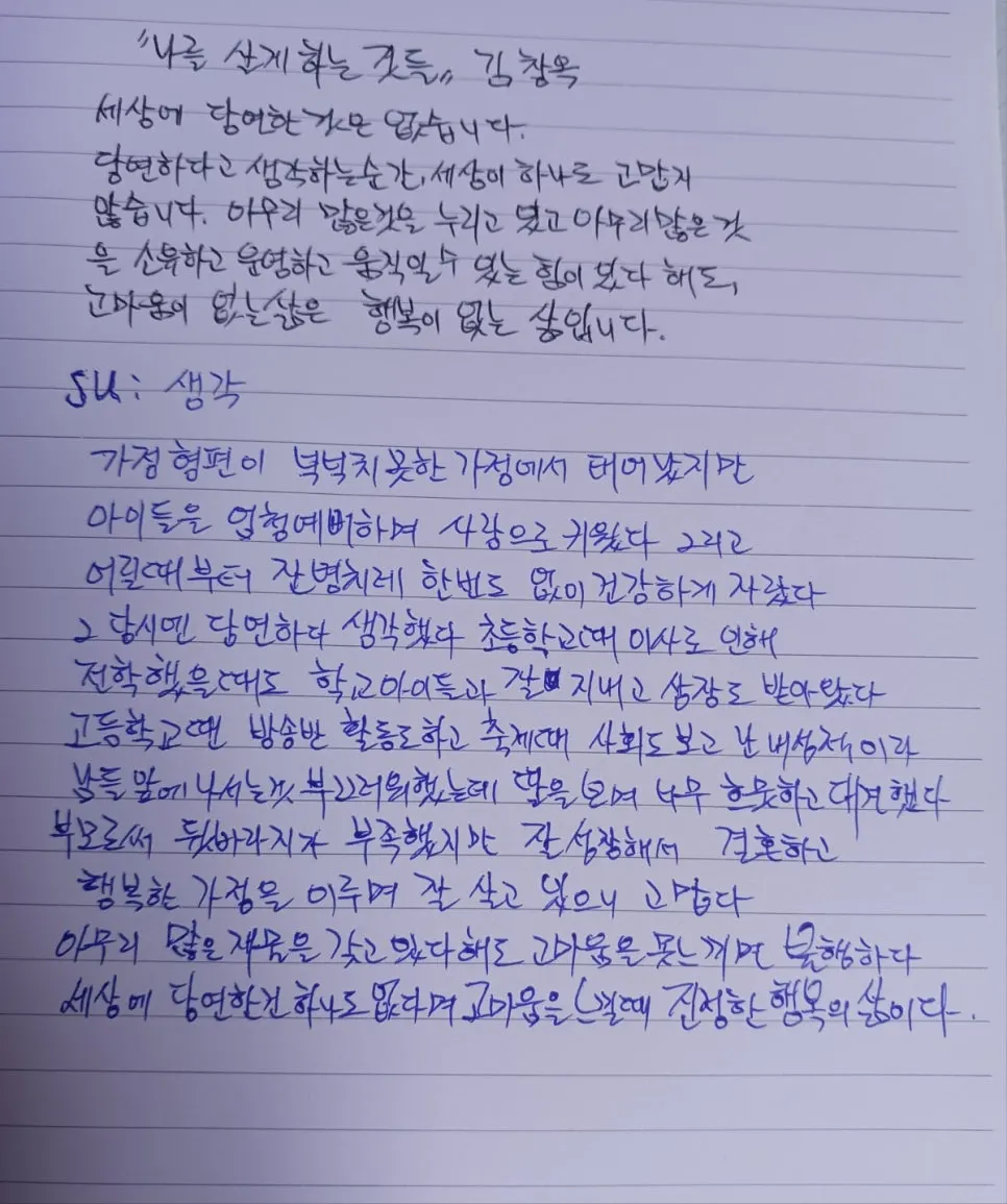 세상에 당연한 건 하나도 없다며 고마움을 느낄 때 진정한 행복의 삶이다.