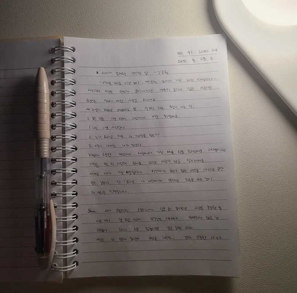 타인과의 사랑은 언젠가 끝이 나지만 나 자신을 사랑하고 나의 가능성을 믿으며, 타인에게 칭찬받기보다는 나에게 박수를 보내는 삶이 되길 노력해야겠다고 다짐한다.