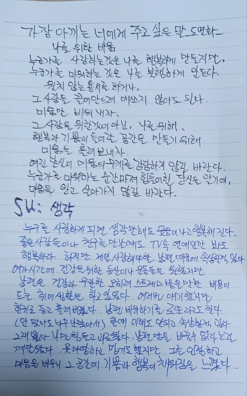 하지만 제일 사랑해야 할 남편 때문에 속상한 적 있다. 여가시간에 건강을 위한 등산이나 운동 등을 원했지만 남편은 건강과 무관한 오히려 스트레스받을 만한 비용이 드는 취미생활을 하고 있었다. 여러 번 얘기했지만 한 귀로 듣고 흘려버렸다. 남편 비유하기를 로또라고도 한다. 안 맞아도 너무 안 맞아서. 이해도 안 되고 속상한 적 있다. 그래 봤자 나만 힘들고 괴로웠다.