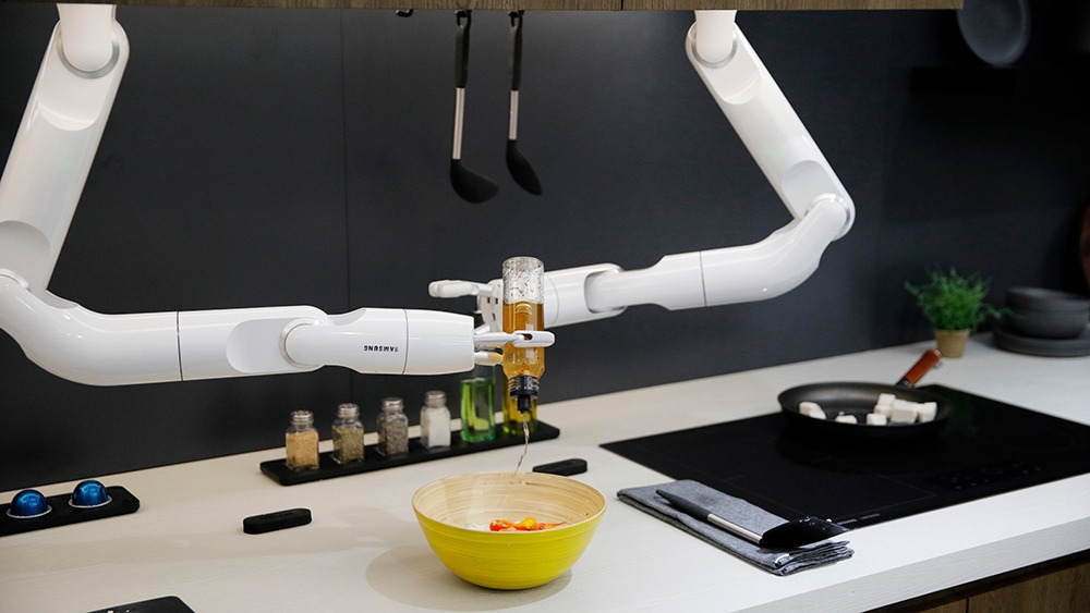 명령을 인식한 주방의 요리 로봇이 냉장고로부터 식자재 리스트를 전송받아 오늘 요리가 가능한 메뉴를 스크린에 띄우고, 보관 중인 식자재 종류와 보충해야 할 기본 식재료 목록도 함께 보여주며 명령 대기모드로 동작한다. 냉장고에 보충해야 할 식자재는 냉장고 패널에서 구매 결정을 하면 2시간 이내로 드론 로봇에 의해 집까지 배달된다.
