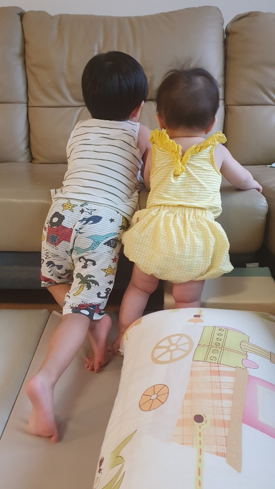 첫째와 실갱이를 벌이다가 둘째가 웃는 모습을 보면 모성애가 치밀어 올라 화난 마음도 스르륵 가라앉고 첫째까지 따뜻하게 안아주게 된다.
