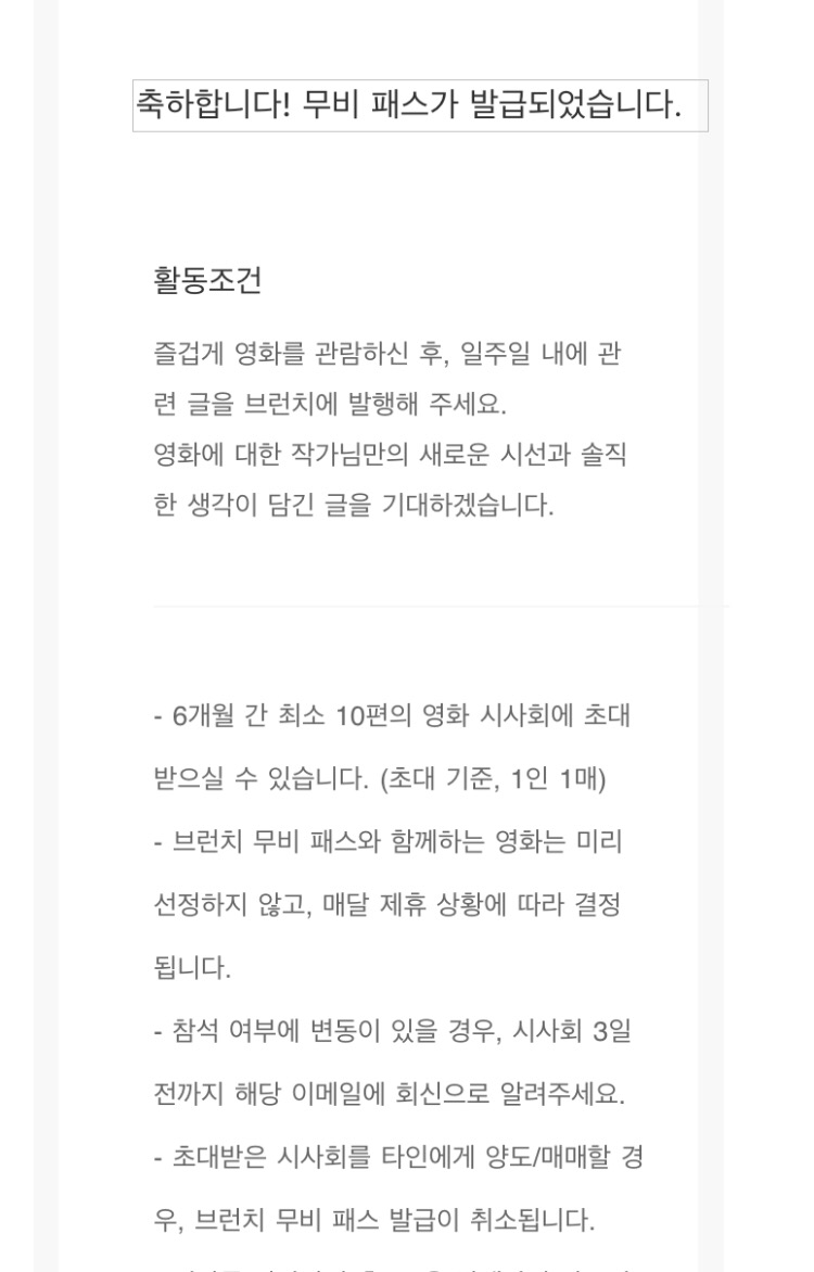 하지만 오늘 브런치 무비패스에 영화리뷰글이 통과되고 보니 마음이 달라지는게 사실이다.