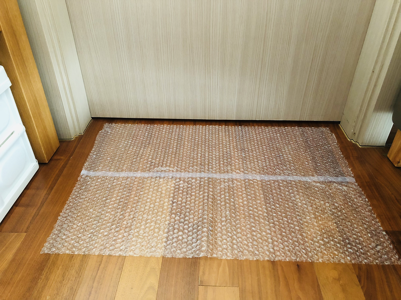 잠이 확 깨는 소리가 발밑에서 들렸다. 폭신하지만 미끌미끌한 감촉이 발밑에서 느껴졌다. 고개를 돌려 내려다보니 어제 택배와 함께 배달된 완충제 ‘뽁뽁이’가 문 앞에 넓게 펼쳐져 있었다.