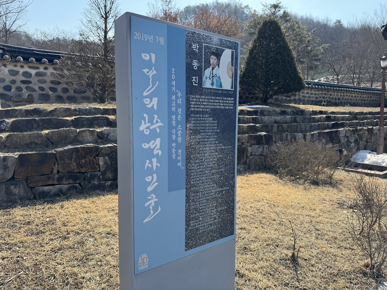 여행을 한 지 얼마 되지 않았는데 기록하지 않으니 자꾸 잊어버리네요. 공주 석장리 박물관에서 찐하게 놀고, 즉흥적으로 박동진 판소리 전시관으로 향했습니다. 이곳은 아담한 마을이 둘러싸고 있는 곳에 자리 잡고 있어요. 방문객이 많지 않아서 인지 사무실에서 저희가 도착한 것을 보고 굳게 닫힌 전시관 문을 열어주셨습니다. 박동진이 누구일까 했는데 얼굴을 보자마자 알겠더라고요. 어렸을 때 텔레비전에서 구수하게 소리를 뽑아내던 그분이었어요.