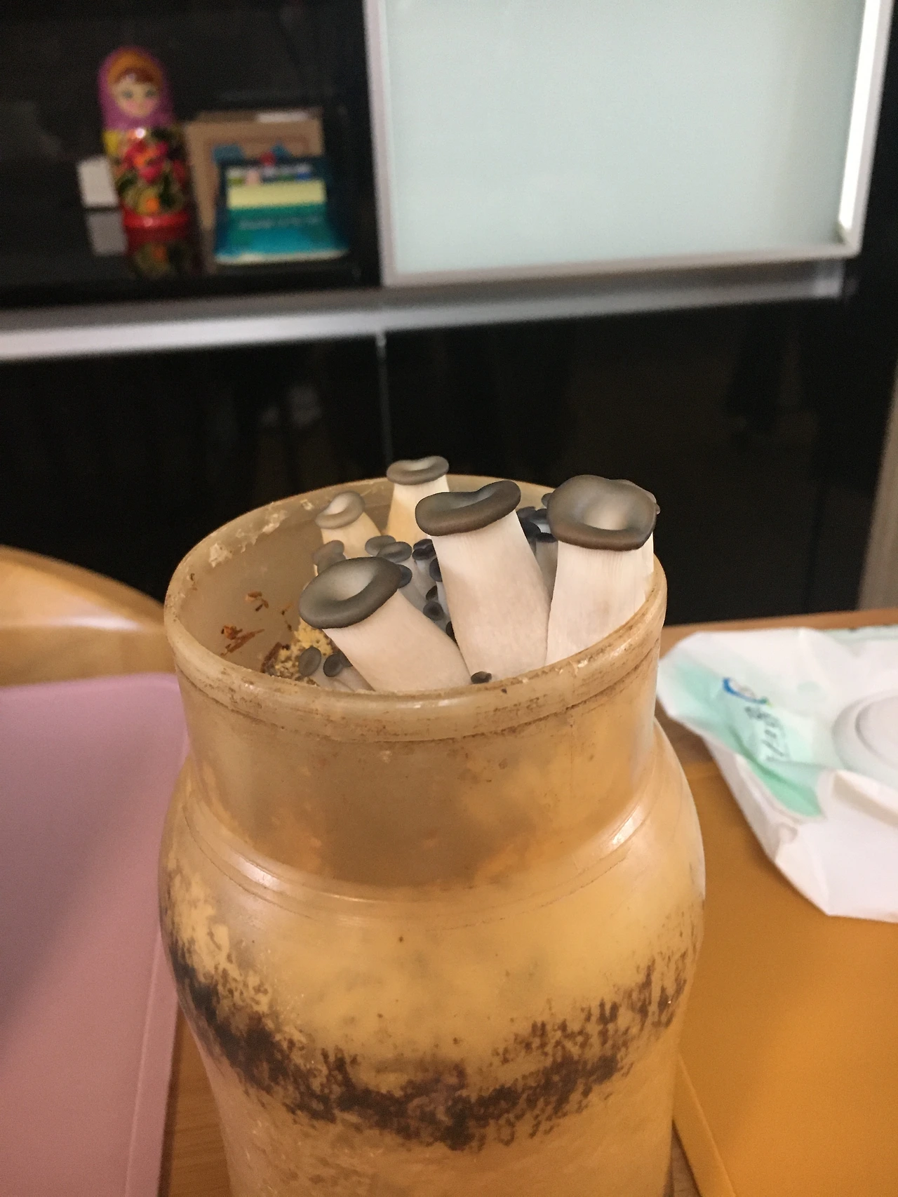 쫑은 그날 유치원에서 오자마자 가방을 집어던지고 버섯 키트 상자를 열었다. 숟가락으로 배지를 파내고, 물을 흠뻑 주고, 30분 후에 물을 덜어내는 간단한 일련의 작업을 함께 했다.
