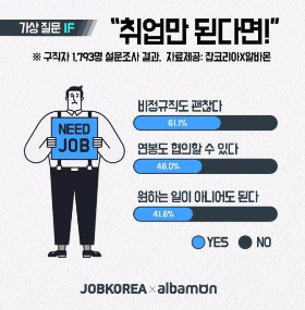 또 다른 조사에서는 절반에 가까운 사람들이 취업만 된다면 원하는 일이 아니어도 된다고 응답했다.