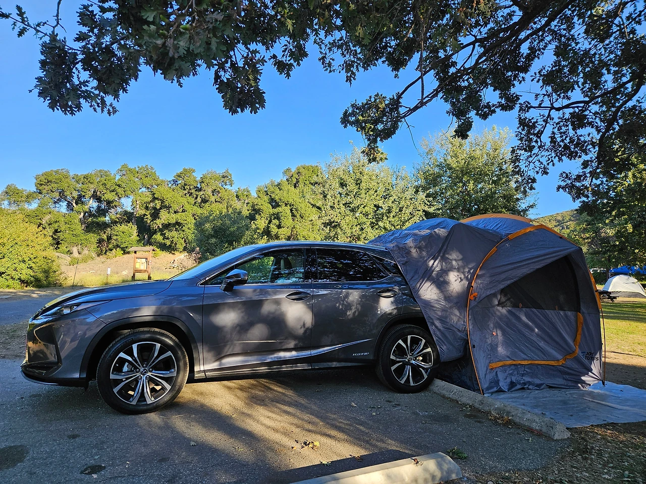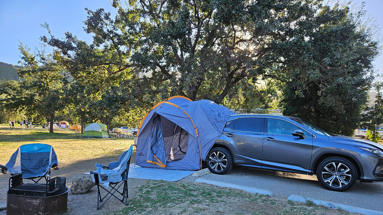 텐트를 차와 연결하고 트렁크를 열어두니 짐을 바로 빼기도 좋았다.