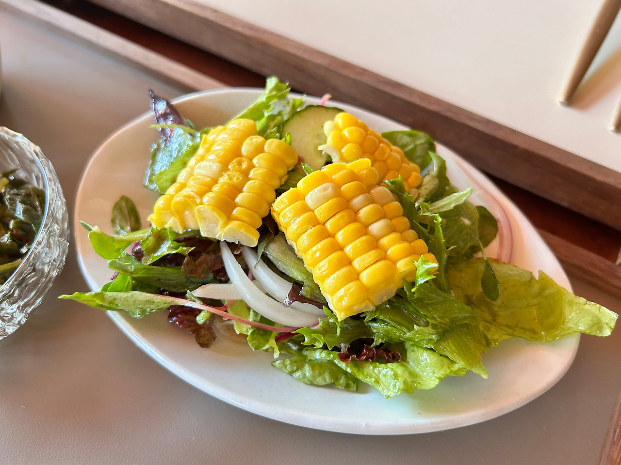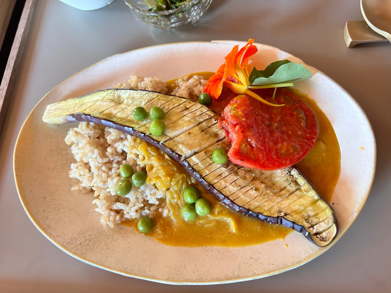시판 카레가 아닌 직접 만든 카레루에 캐러멜라이징한 양파와 함께 물을 붓고 한소끔 끓인 후 구운 가지와 토마토, 삶은 완두콩을 곁들이니 눈으로 한번 코로 한번 입으로 한번 식욕을 당겼고 식재료 본연의 맛을 음미하니 맛 또한 일품이었다. 채식만으로도 훌륭한 식사를 할 수 있다는 것이 매력적으로 다가왔다.
