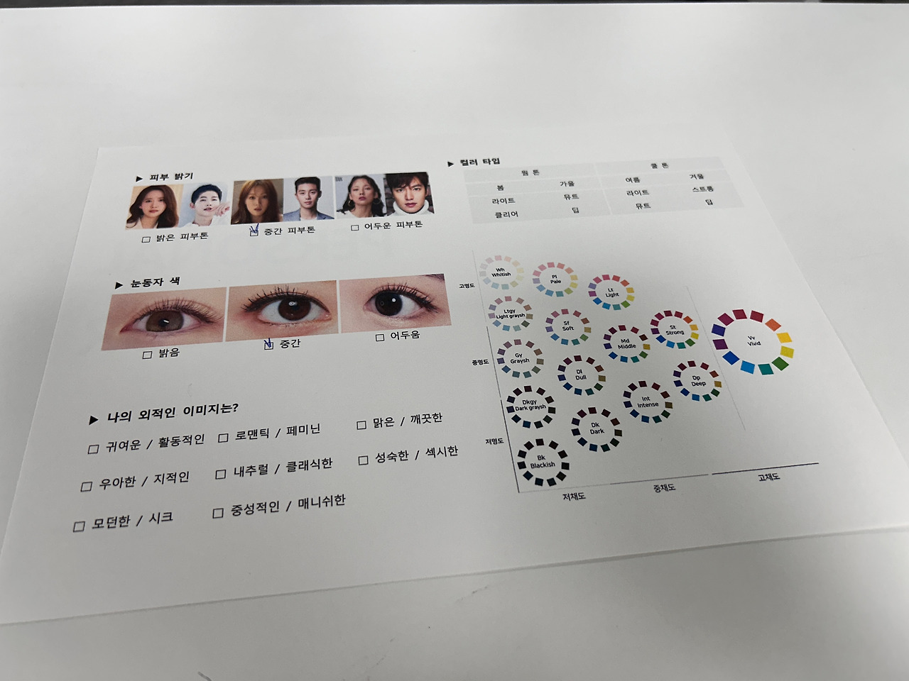 퍼스널컬러 특강이 쓰여있는 현수막을 보았다. 보자마자 바로 전화를 걸었으나 방문접수만 한다고 했다. 접수기간이 임박해 행여나 마감이 됐을까 조마조마한 마음으로 발걸음을 재촉했다. 다행히 두 자리가 남았다. 무사히 접수를 마치니 마음은 가벼워졌다. 특강 당일 여유 있게 도착했다. 'ㄷ자' 대형으로 책상과 의자가 배치되어 있었고 나는 한쪽 끝자리에 앉았다. 브레이크타임 시간에 강사님께서 질문을 하셨다.