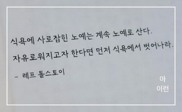 생각나는 대로 적었지만, 득이 더 많다는 걸 눈으로 확인을 했다. 다시 저녁 7시 이후 금식과 금주를 작심삼일이라도 좋으니 딱 한 번만이라도 지켜보자라는 심정이었다. 4일째 되는 날 이 글을 쓰고 있다. 작심삼일은 넘겼다. 4일째 되는 날 아침에 눈 떴을 때 느꼈던 이 희열감을 몸에 새겨두고 싶다. 두 번째 허들을 넘은 느낌이 든다.