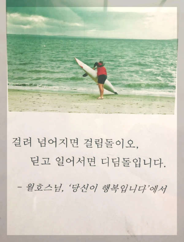 나 여태껏 뭐 한 거지?라는 말만 머릿속에 맴돈다. 아무것도 안 하고 멍하니 앉아있었다. 갑자기 수면 위로 떠오르는 느낌이 들면서 "언제까지 제자리걸음만 할래?" 누가 귓가에 속삭이는 것 같았다. 시계를 보니 40분이나 흘렀다.