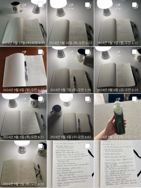 여행을 가서도 전날 술을 마셨어도 어김없이 6시 전에 일어나 명상과 필사를 하고, 하루 10분 운동과 독서를 했다. 말하긴 조심스럽지만 뭔가 달라지는걸 조금씩 느낀다. 이 챌린지를 시작하고 혼술을 한 적이 없다. 이렇게 변화가 시작되나 보다. 매일매일 인지시켜줘야 한다는 걸 체감하며 내일도 나는 6시 전에 일어나 차를 마시며 명상과 필사를 하고 있을 것이다.