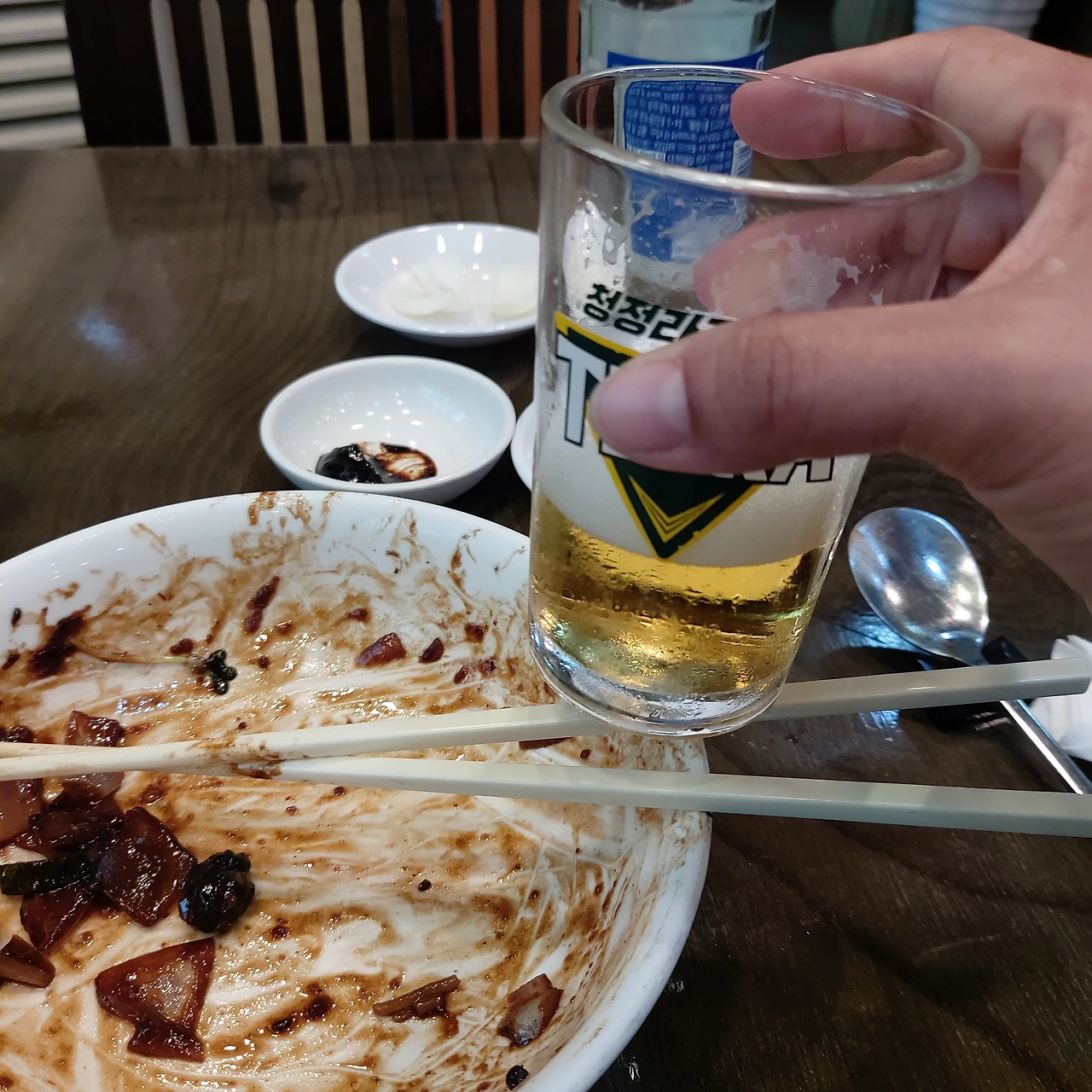 시원한 맥주로 입과 마음을 가다듬고